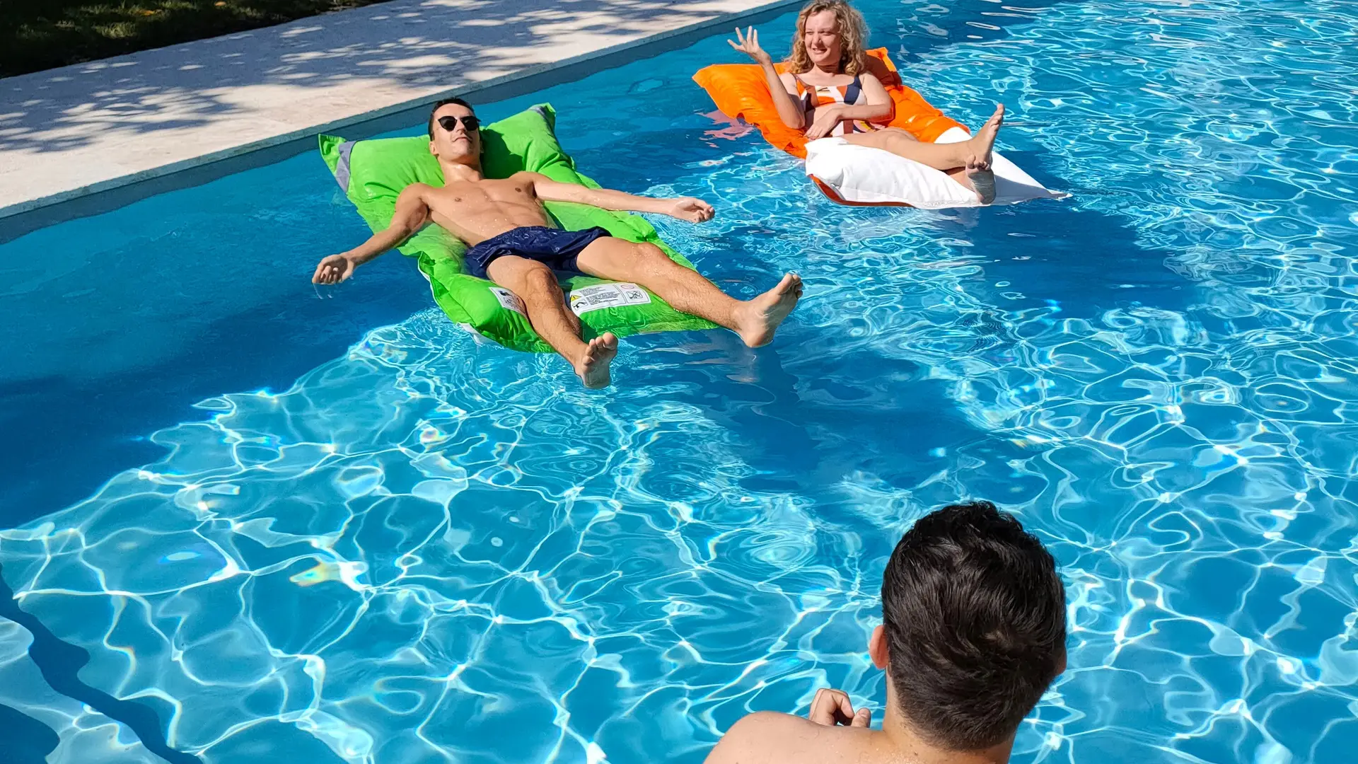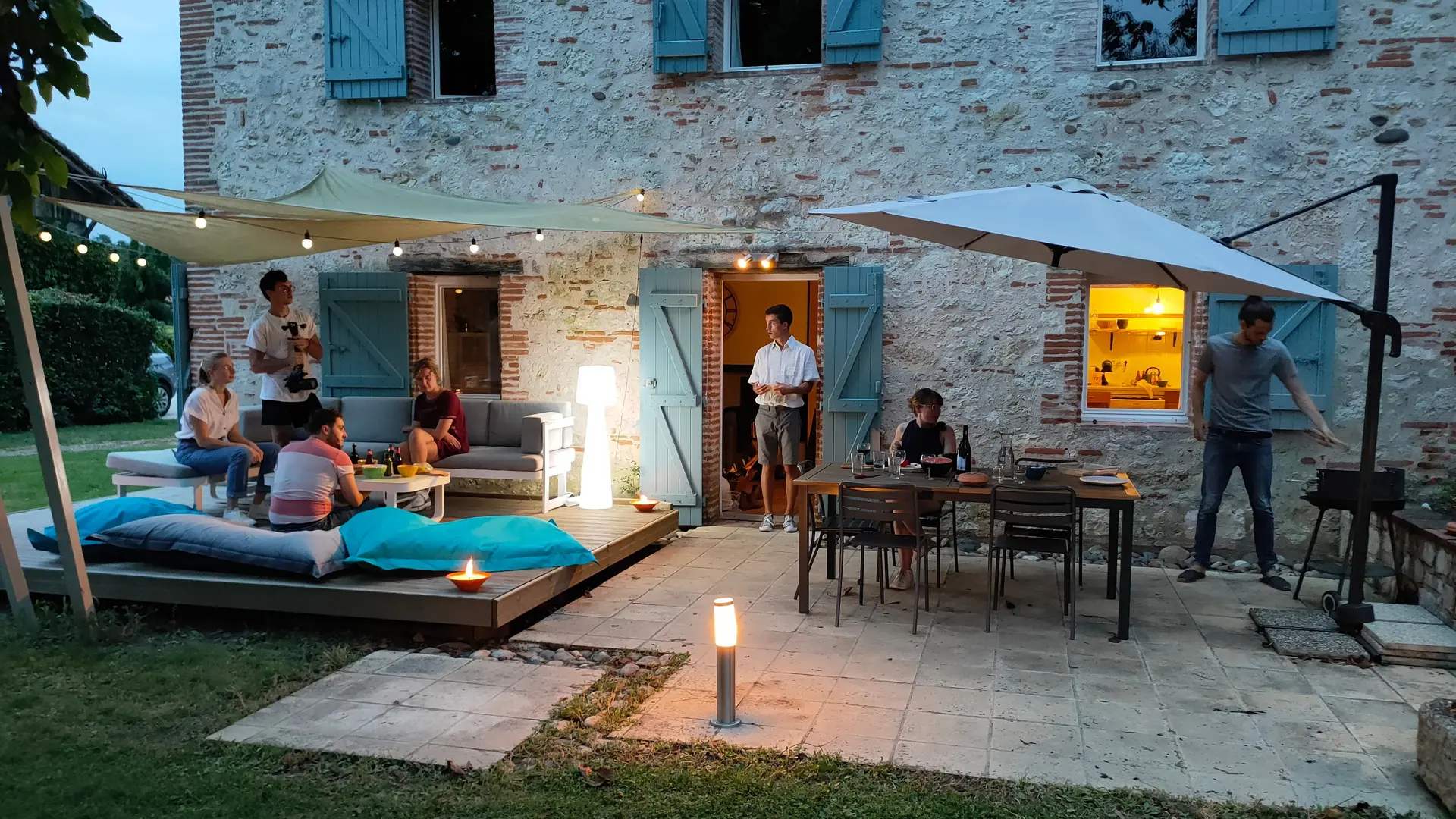 La casa dispone de una terraza privada con muebles de jardín, barbacoa, zona de salón, sofá exterior, sombrilla y tumbonas. El espacio verde privado incluye una piscina exclusiva (4 x 10 m) y un trampolín. El primer escalón de la piscina es muy amplio y poco profundo, ideal para tumbarse o para los niños. El wifi está disponible en todo el parque, incluida la zona de la piscina.