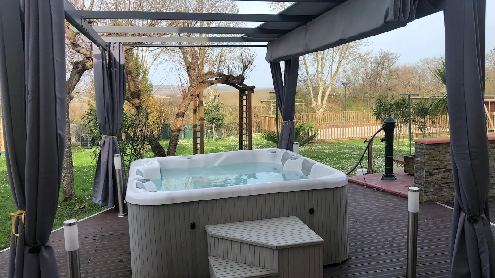 Alojamiento confortable y tranquilo en un parque de 2 000 m² con piscina, spa, área de juegos y vista al valle del Garona.