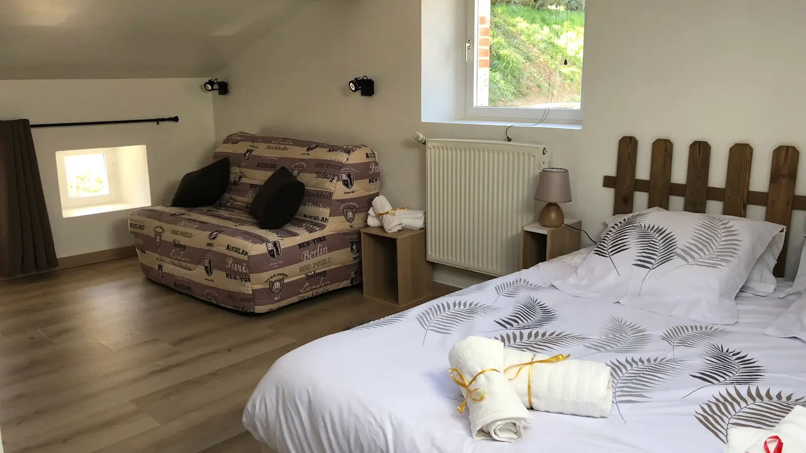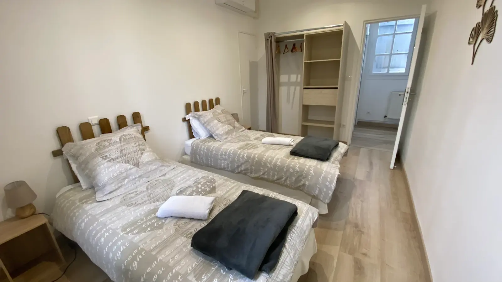 La distribución de las camas incluye dos dormitorios en la planta baja y dos en la planta superior, todos climatizados, con vistas al jardín y equipados con camas individuales convertibles en camas dobles. El gîte dispone de cuatro cuartos de ducha y aseos.