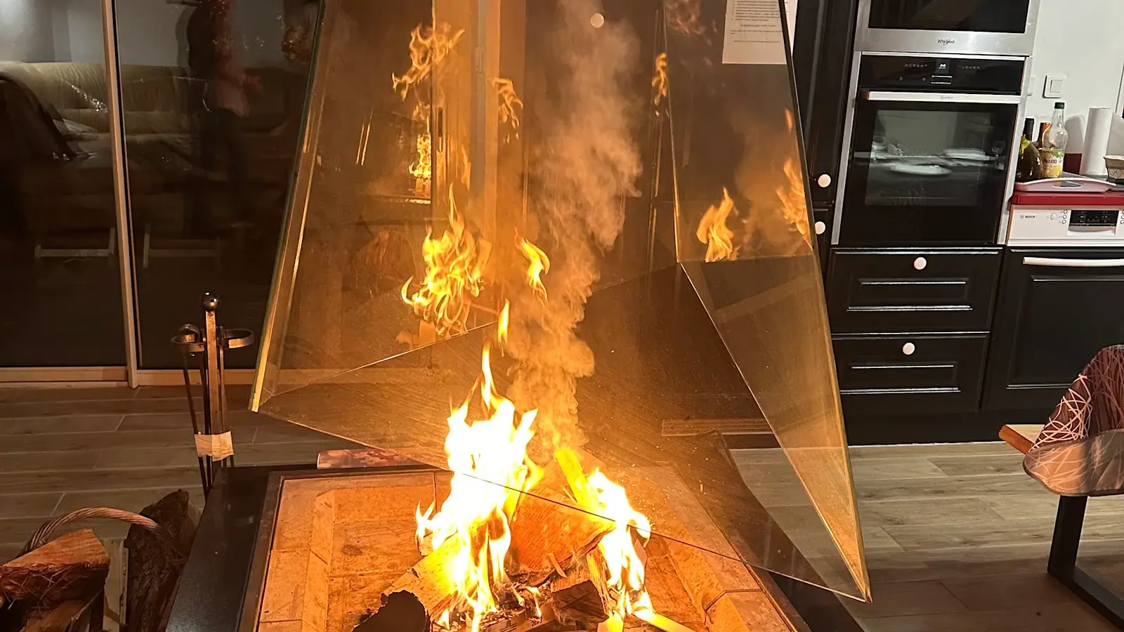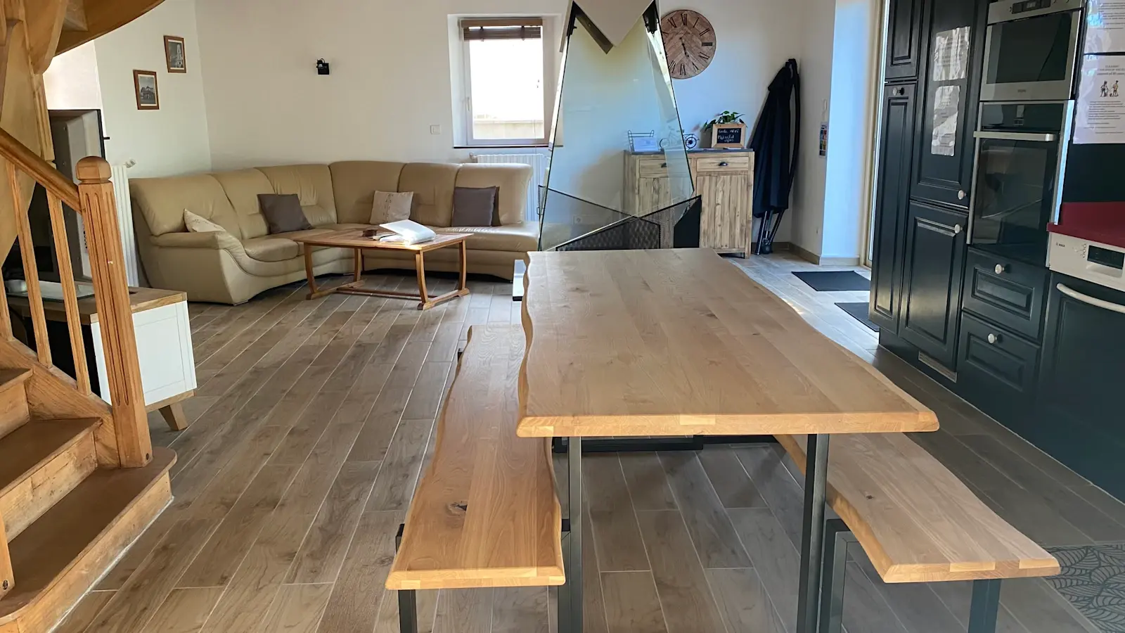 El alojamiento cuenta con cuatro dormitorios y un altillo. Disfrutará de un amplio salón climatizado con chimenea central y de una cocina abierta totalmente equipada. Un gran ventanal da acceso a la terraza y al jardín.