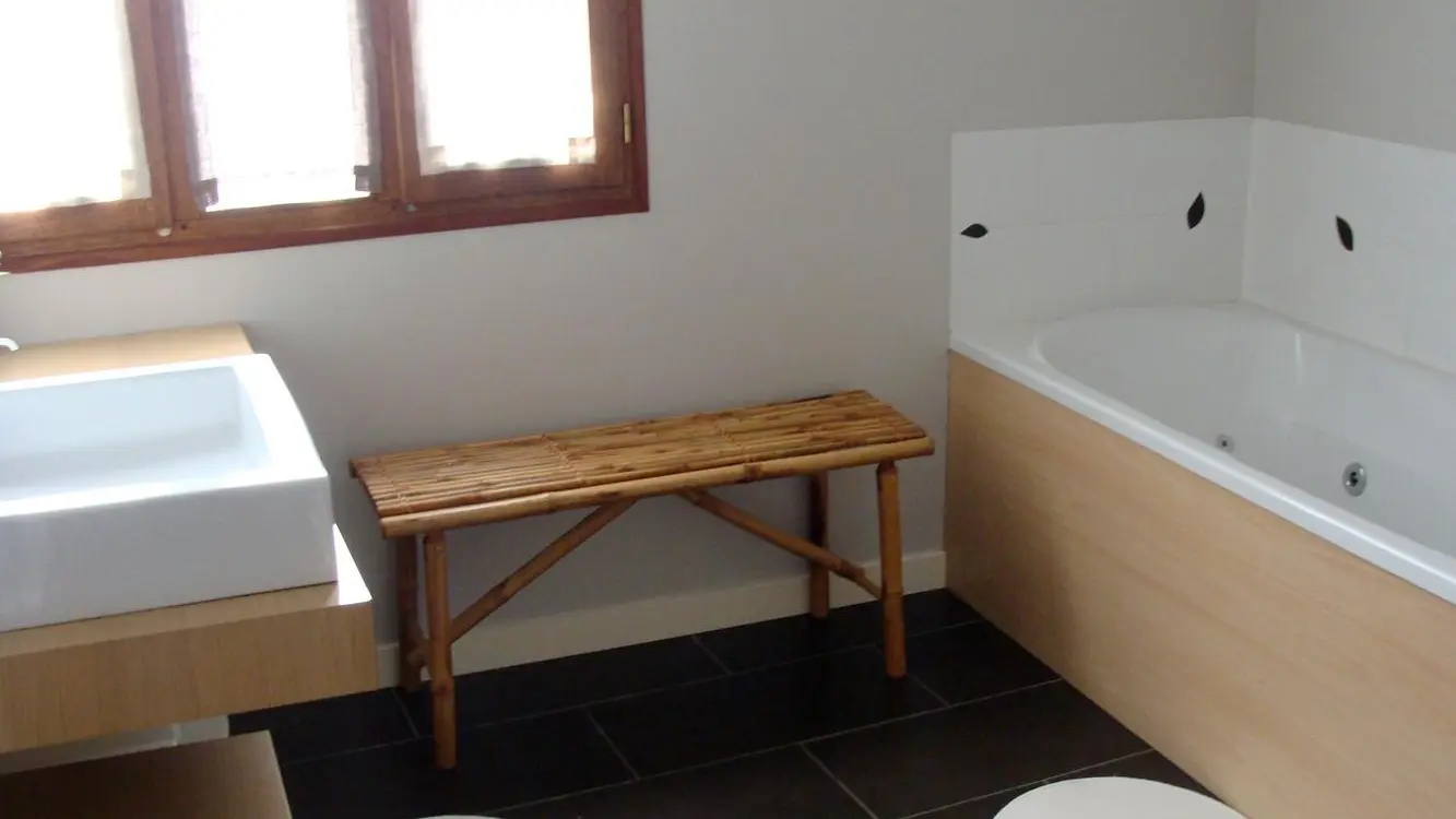 Esta casa independiente, en un pueblo incluye: 1 sala de estar grande (2 sofás, reproductor de DVD), 1 cocina (microondas, lavavajillas) original con vistas a una terraza cubierta, baño (baño, ducha), WC, 1 dormitorio (1 cama 160 + 1 cama 90).
