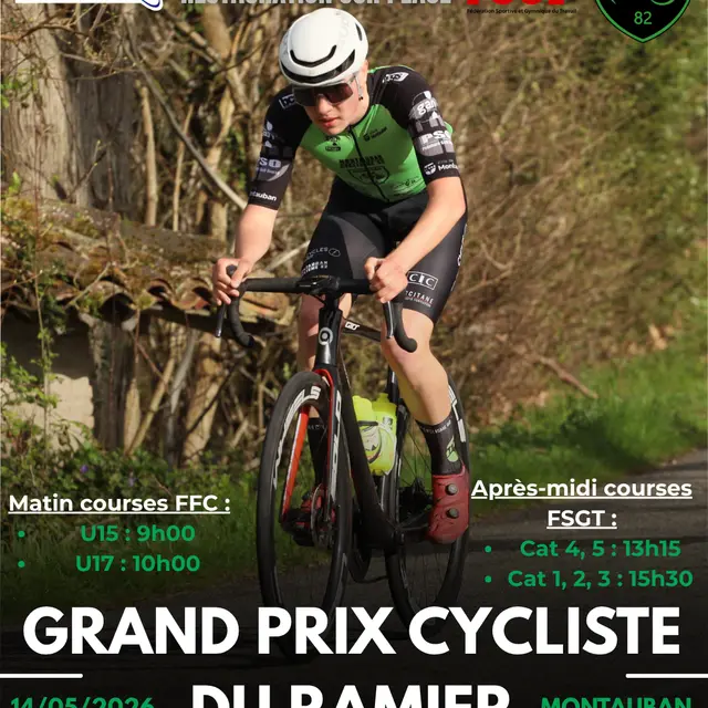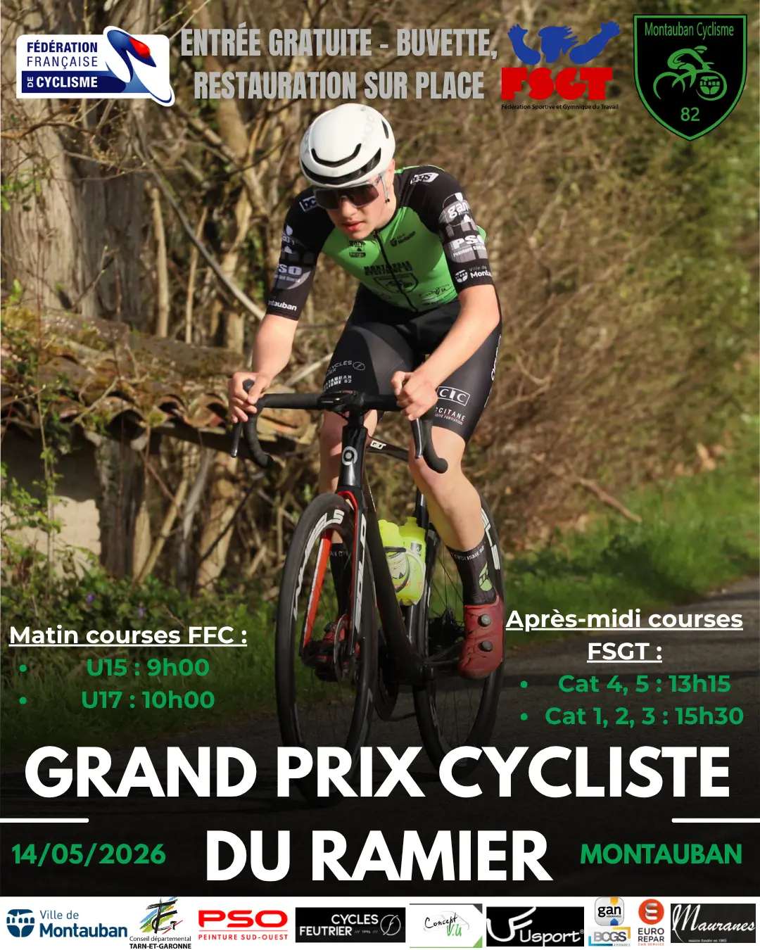 Montauban Cyclisme 82 se enorgullece de organizar esta nueva edición del Gran Premio de Ramier. El programa incluye dos carreras: una matutina de la FFC para jóvenes ciclistas de las categorías sub-15 y sub-17, y una vespertina para todas las categorías bajo los auspicios de la FSGT.