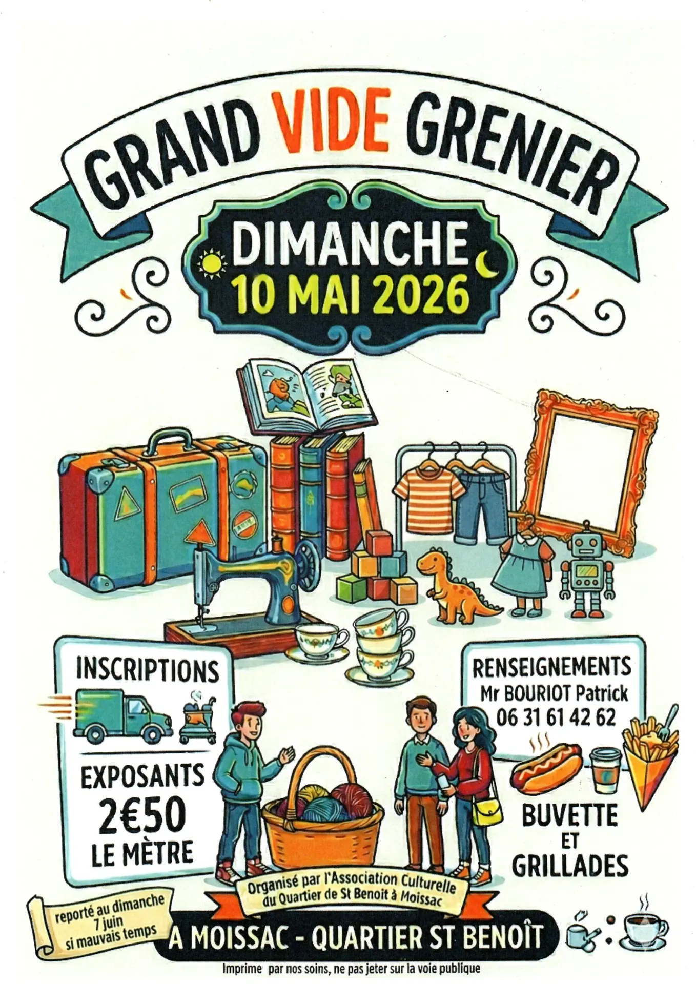 Acompáñanos el domingo 10 de mayo de 2026 en el barrio de Saint-Benoît para disfrutar de una agradable jornada llena de gangas.