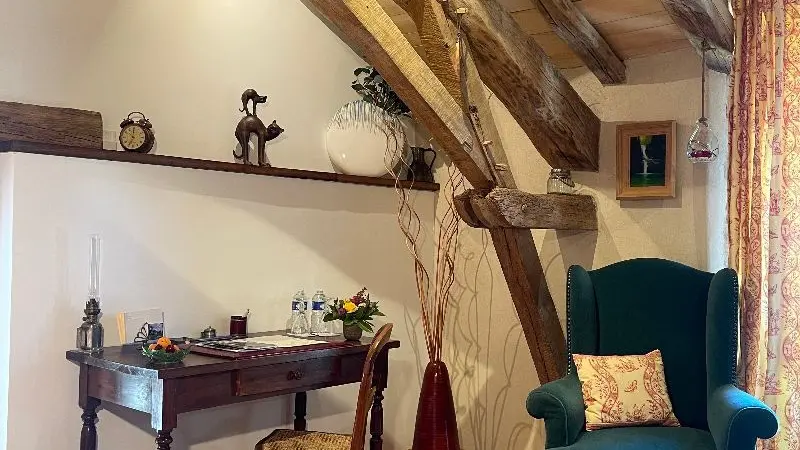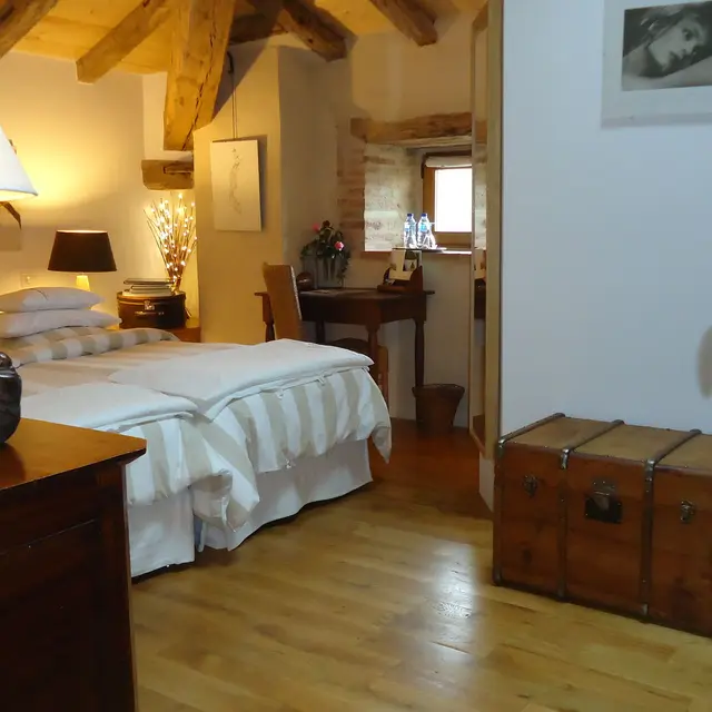 A descubrir. En la casa de los propietarios, la habitación acondicionada por el aire se encuentra en el primer piso (2 camas 90) con ducha (cuenca, caminata en la ducha, WC). Terraza con sofá y vista del parque.