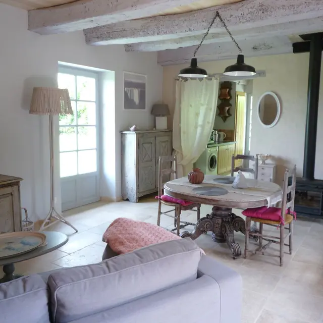 En el campo, Gîte independiente, en un nivel (1 paso en la entrada) incluye una sala de día con sala de estar (sofá, televisión, estufa de leña) y cocina (elementos integrados (lavadora, microondas), sala de ducha/WC, 1 dormitorio (1 cama 160). terraza y salón de relajación + tierra (1000 m²) no privado, mesa de jardín y barbacoa. Garaje para bicicletas (2 bicicletas de montaña y 2 bicicletas de carretera). Una cerca y un camino separan la cabaña del río. Barco disponible a los clientes. Cañas de pesca suministradas. Impuesto a la estadía. El precio incluye: sábanas, baño y ropa de cama, madera, acceso a Internet WiFi.
