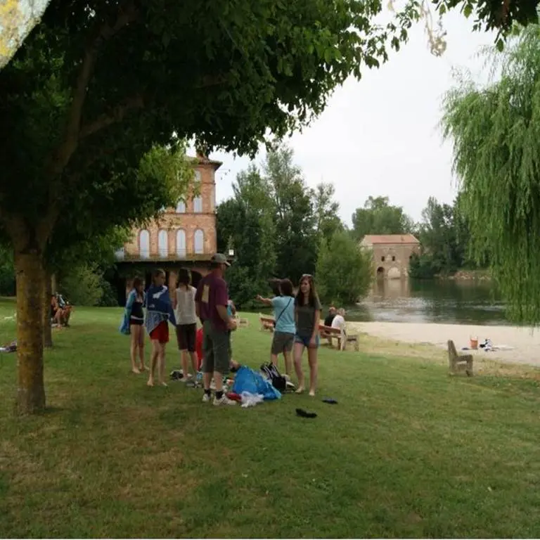 Ven a disfrutar de la frescura del río Aveyron y la playa de arena en el corazón del pueblo de Lamothe-Capdeville.