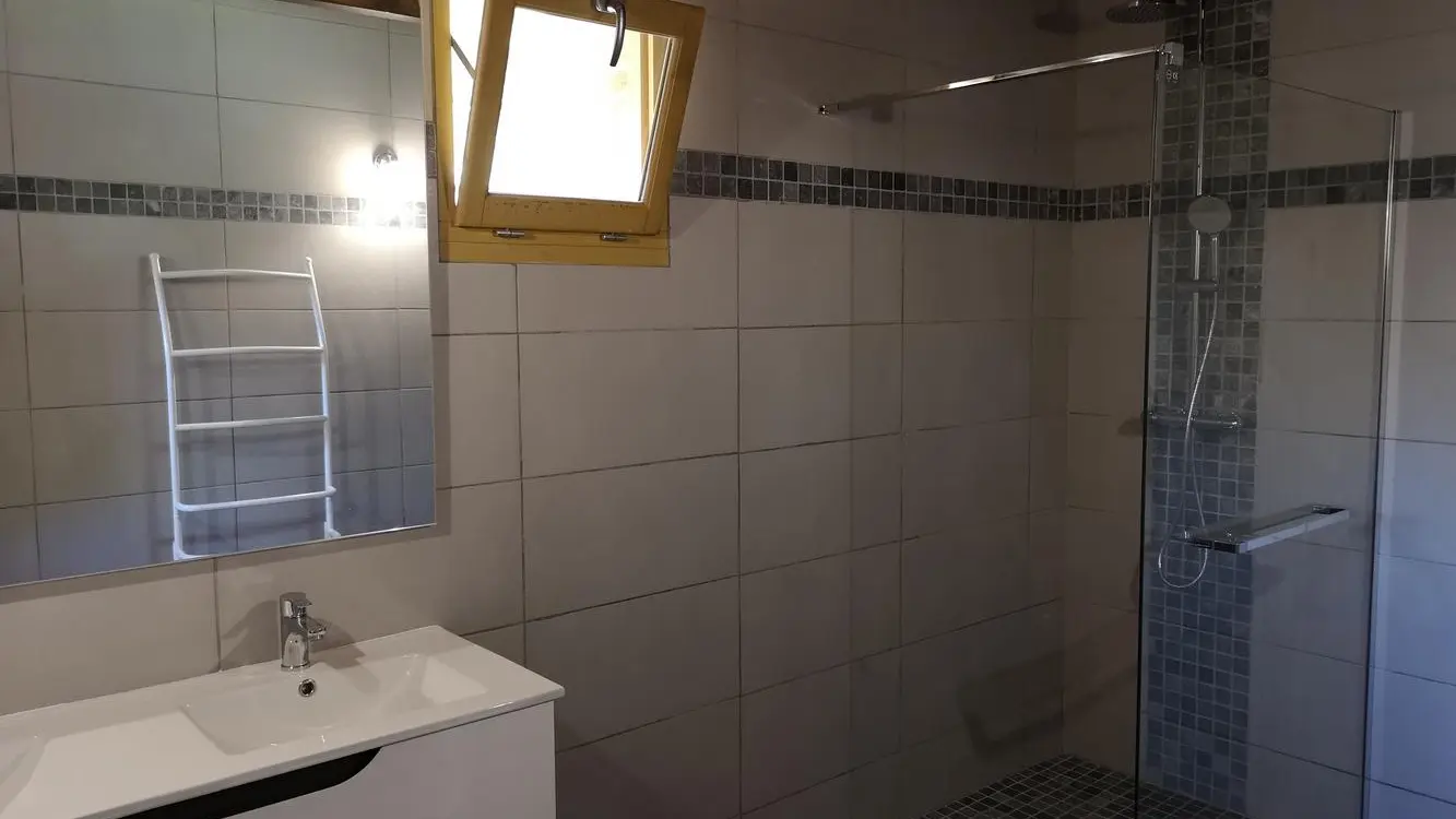 Apreciará la comodidad del baño con ducha a ras de suelo, lavabo doble y almacenaje.
