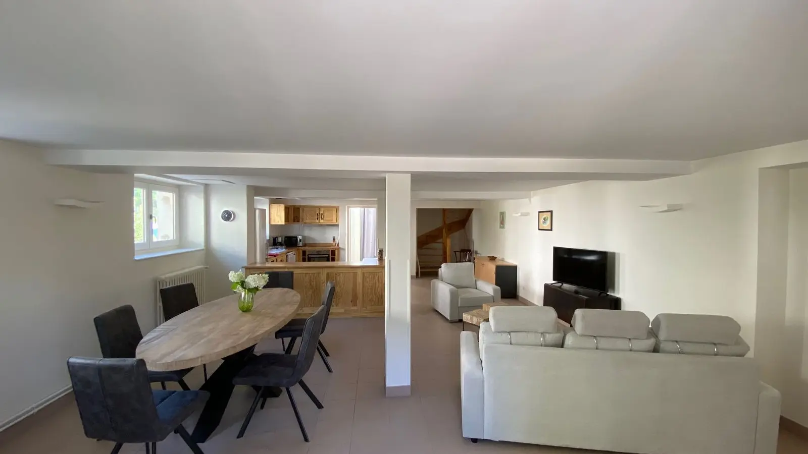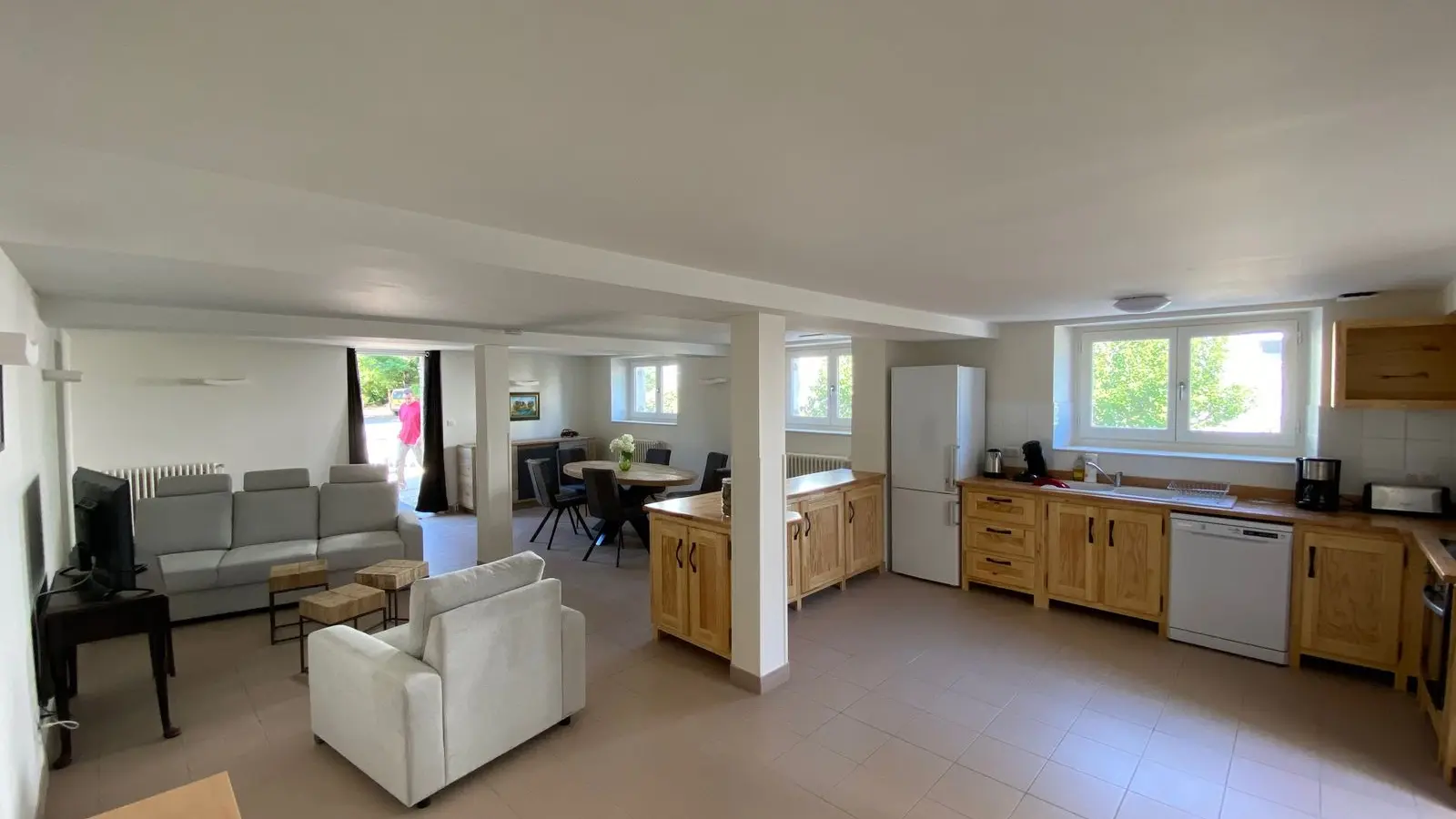 En la planta baja, el alojamiento incluye un gran salón de entrada, una sala de estar muy grande (sofá, mesa de café de los sillones) mesa de comedor, sillas, televisión. Cocina independiente de tipo integrado (microondas, lavavajillas 2 refrigeradores, 1 congelador, 2 placas de inducción) (WC independiente que incluye 1 persona accesible con movilidad reducida con ondas de mano), sala de lavandería con persistente y lavadora). En el primer piso con elevador o escalera de 2 hp (2 camas 0.80 cerca con baño privado y WC cada uno), 1 habitación (3 camas 0.80 incluyendo 2 cierres), 1 baño privado con WC. En el segundo piso con elevador o escalera: 1 HP (2 camas 0.80 Cerrar con baño privado y WC), 1 dormitorio (3 camas 0.80 incluyendo 2 cierres), 1 baño privado con WC. 1 área de relajación. Terraza de 85 m2 con muebles de jardín, espacios al aire libre con muebles de jardín.