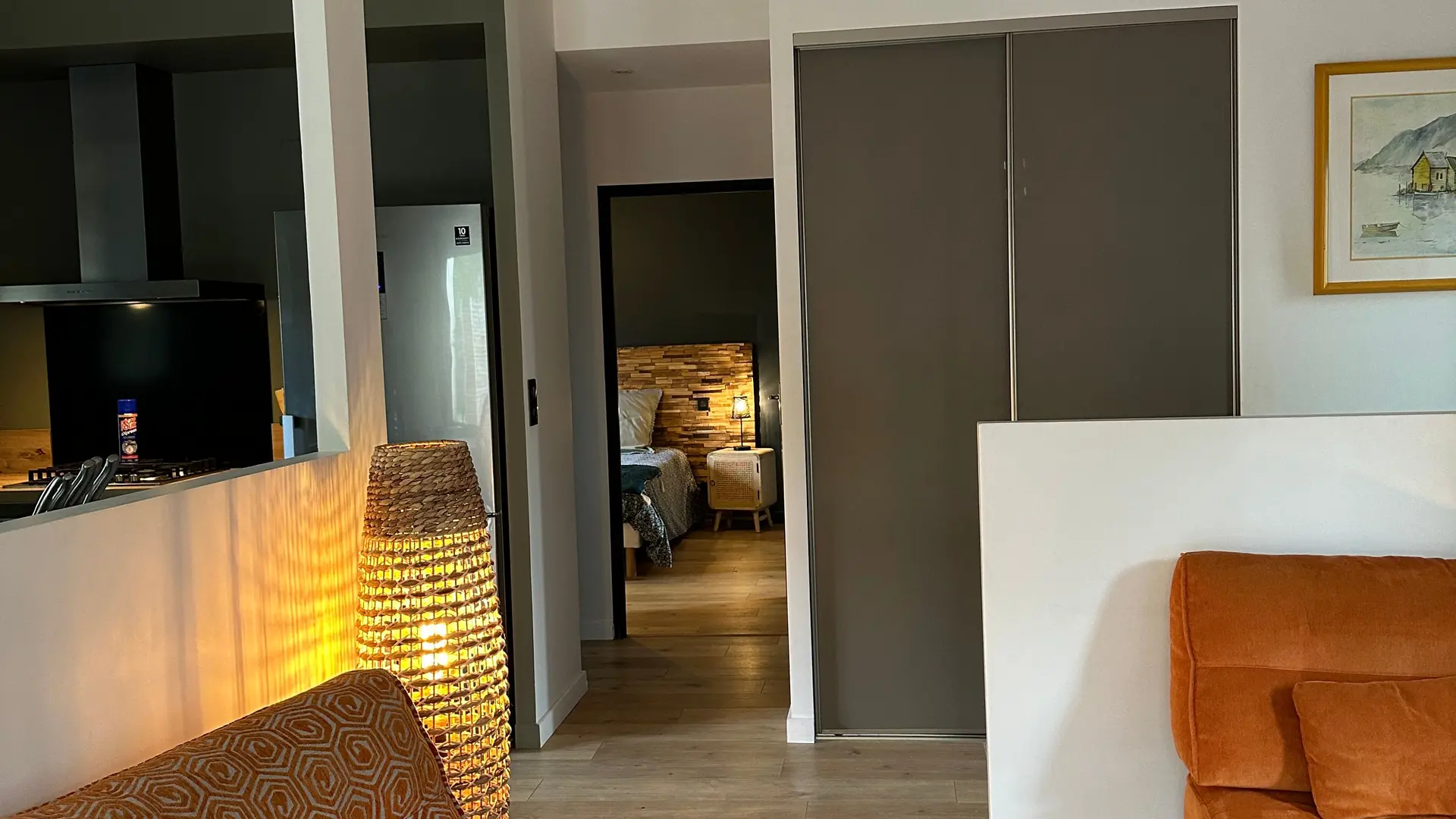 Vivienda de una sola planta tras tres amplias escaleras exteriores, entrada independiente. Incluye: 1 salón con zona de cocina (muebles empotrados, frigorífico-congelador, horno, vitrocerámica, lavavajillas) y sala de estar (sofá, otomana, TV, estufa de leña), 1 despensa (lavadora, secadora), 1 dormitorio (1 cama de 160/190) con baño comunicado (2 lavabos, 1 ducha a ras de suelo), 1 aseo independiente.
