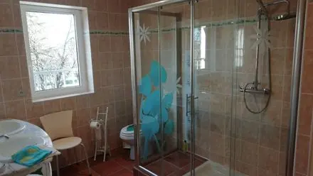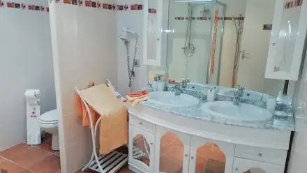 En la casa de los propietarios, con acceso indefinido. : CH "Aurore" (1x140, baño/WC, sofá, televisión, área de cocina, terraza privada). En el ala opuesta, Ch "Romance" (1x140, 1 cama para bebés, SDE/WC), CH "WaterPro" (1x140) con SDE/WC privado no comunicativo, CH "pastel" (1x90 + 1x120) con SDB/privado privado/privado no comunicante WC. Cocina de monedas y sala de estar privada con invitados (sofá, sillones, televisión de pantalla plana, terraza común).