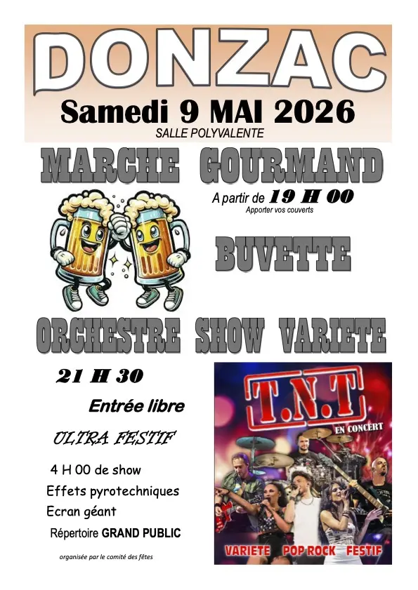Continúa con una cena musical y deliciosa con el grupo "T.N.T", y termina la velada con el tradicional espectáculo de fuegos artificiales.