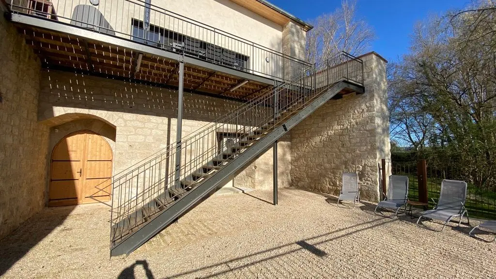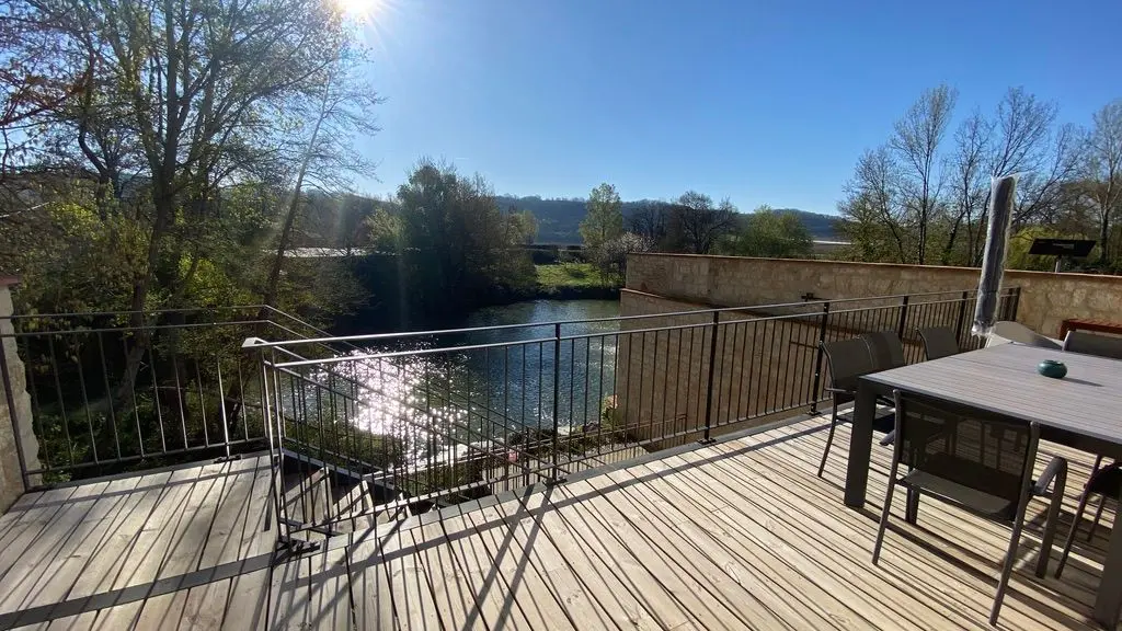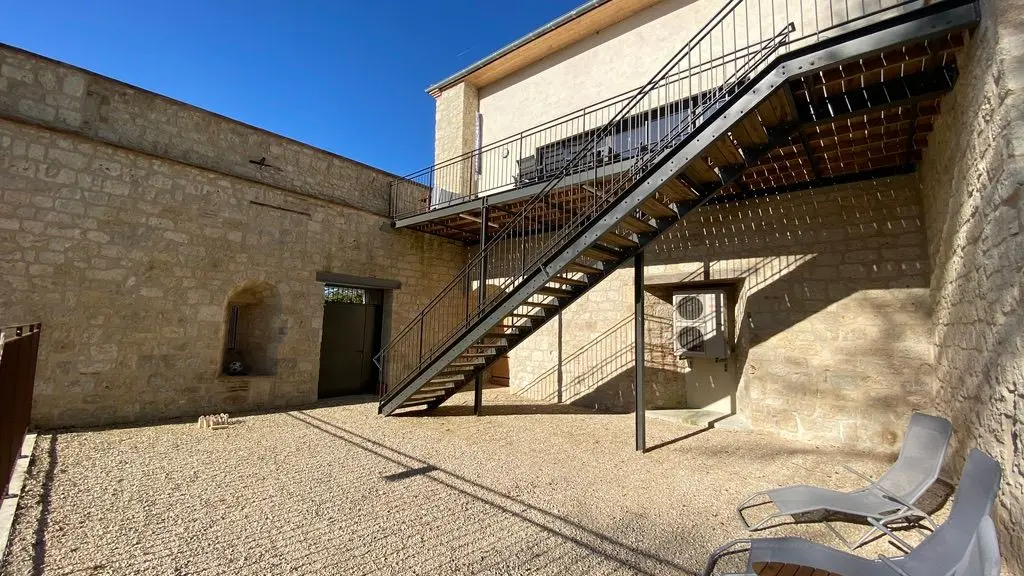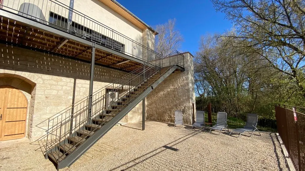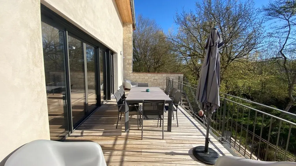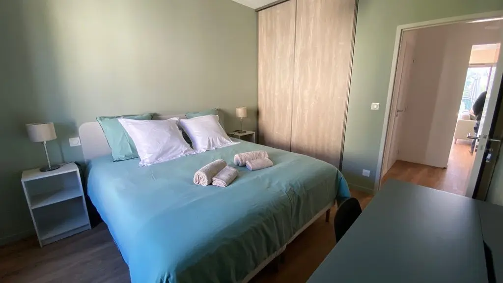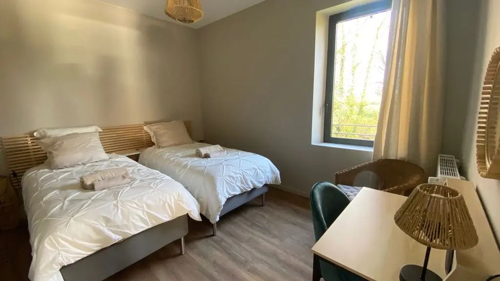 Ubicado en su totalidad en el primer piso, este alojamiento destaca por una encantadora sala de estar con grandes ventanales que se abren a una terraza espaciosa. La cocina, equipada con modernos electrodomésticos, se encuentra junto al comedor, donde una gran mesa y sillas invitan a disfrutar de agradables comidas. El salón es amplio y cómodo, con dos sofás de tres plazas, un sillón, una televisión y una mesa de centro.