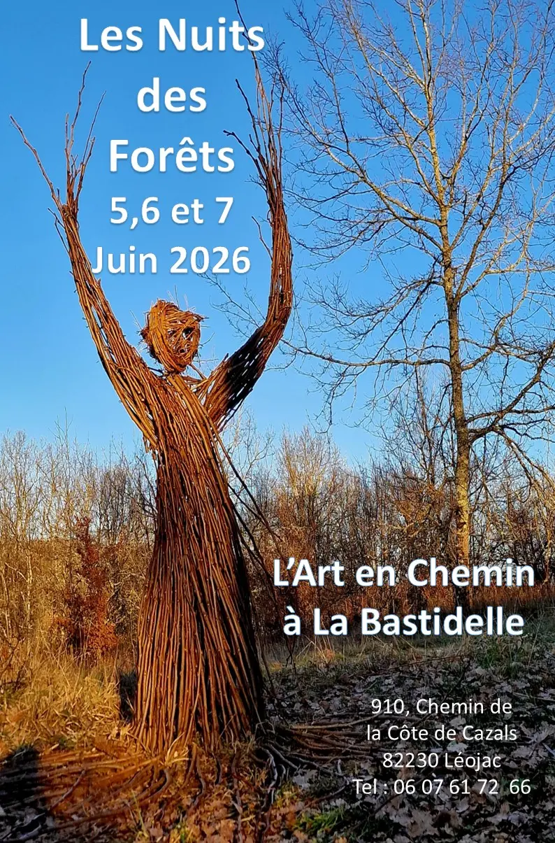 Aquí en Occitania, en Chemin de la Côte de Cazals 910, 82230 Léojac. A través de la presencia de obras de arte* integradas en la naturaleza, «Arte en el Sendero» permite a los visitantes una conexión única con el bosque. La implicación, la experiencia y la pasión compartida de los participantes transportarán e sumergirán a los visitantes en los misterios de las fértiles fuentes de la imaginación, la poesía, el land art, los diálogos gestuales y musicales, los sonidos del bosque y el descubrimiento de las extraordinarias capacidades de sus árboles y su subsuelo.