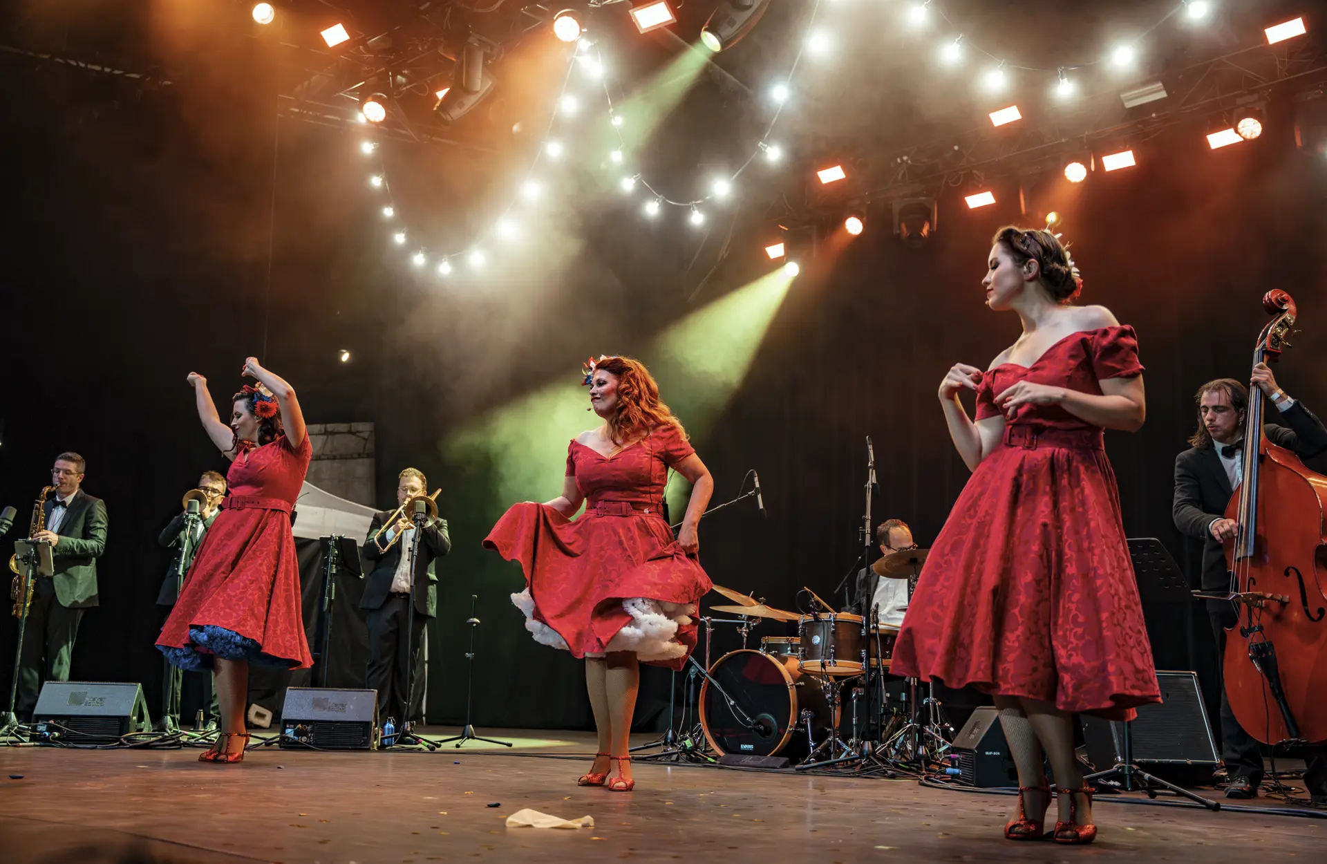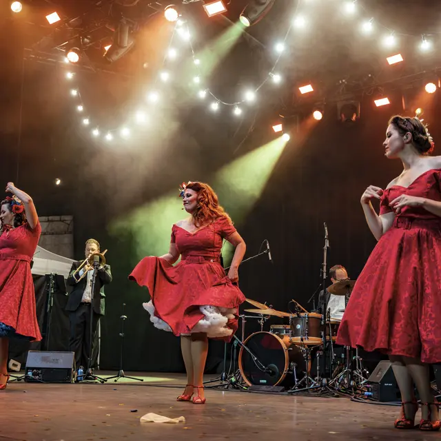 Nuestro trío de cantantes, acompañado por entre tres y seis músicos y una pareja de bailarines, te ofrece un repertorio que marcó la década de los 40, con temas de Duke Ellington, Glenn Miller… y rinde un homenaje muy especial a las Andrews Sisters, a su excepcional armonía vocal y a su energía contagiosa, que han dejado una huella imborrable en el mundo de la música.