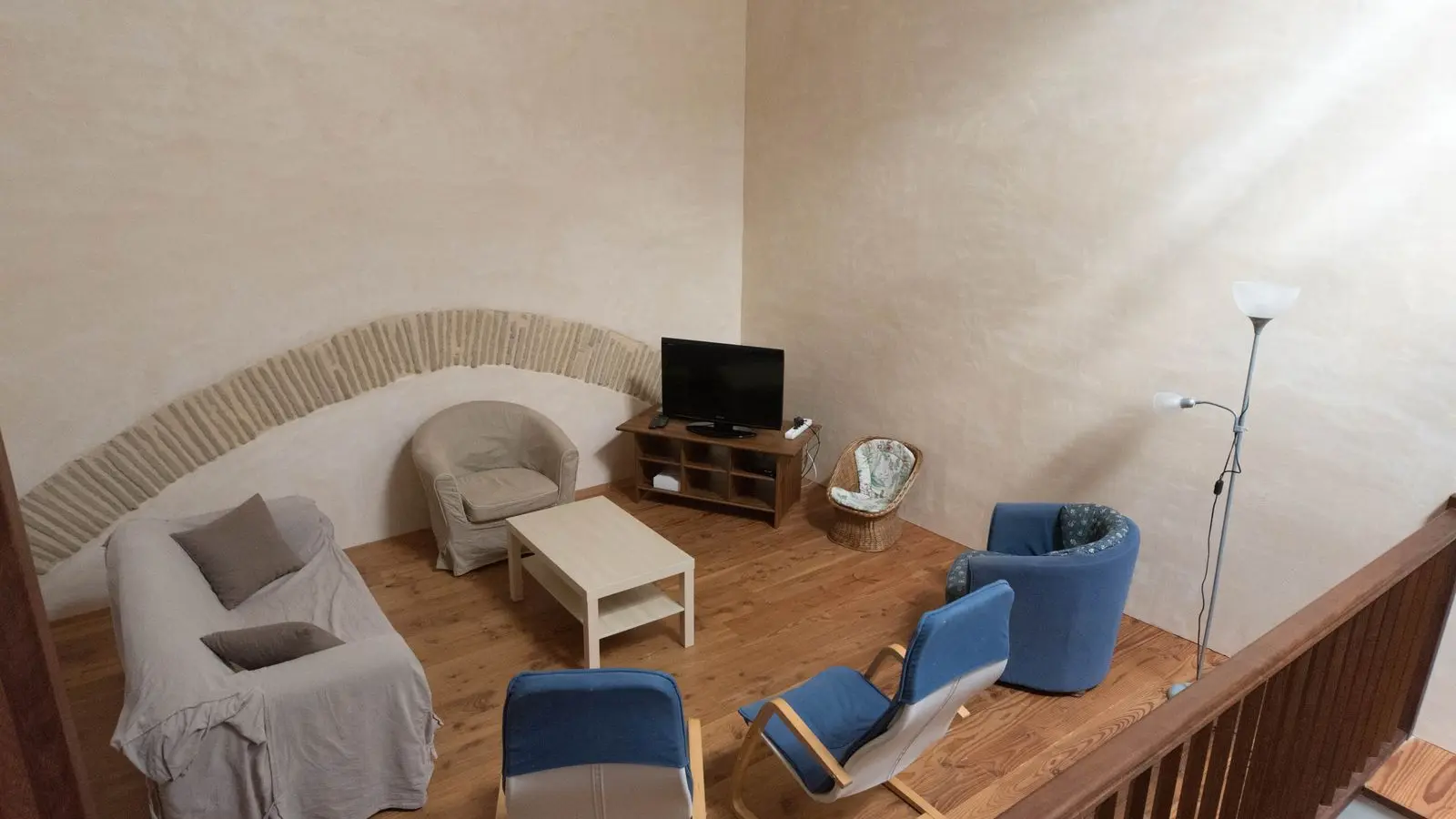 Con acceso independiente, el alojamiento incluye, en la planta baja: sala de estar con área de cocina (MO, LV, LL), SDE, WC. En el primer piso: salón en entrepiso, después de 6 pasos, 1 hp (1 cama 160, fregadero), 1 hp (2 literas 90 camas, 2 90 camas, fregadero), wc. Terraza con muebles de jardín, barbacoa. Gran espacio cercado. Calefacción (bomba de calor). Opcional: limpieza. El precio incluye: el suministro de sábanas, lino para el hogar y el baño, acceso a Internet por WiFi. Impuesto de residencia además.