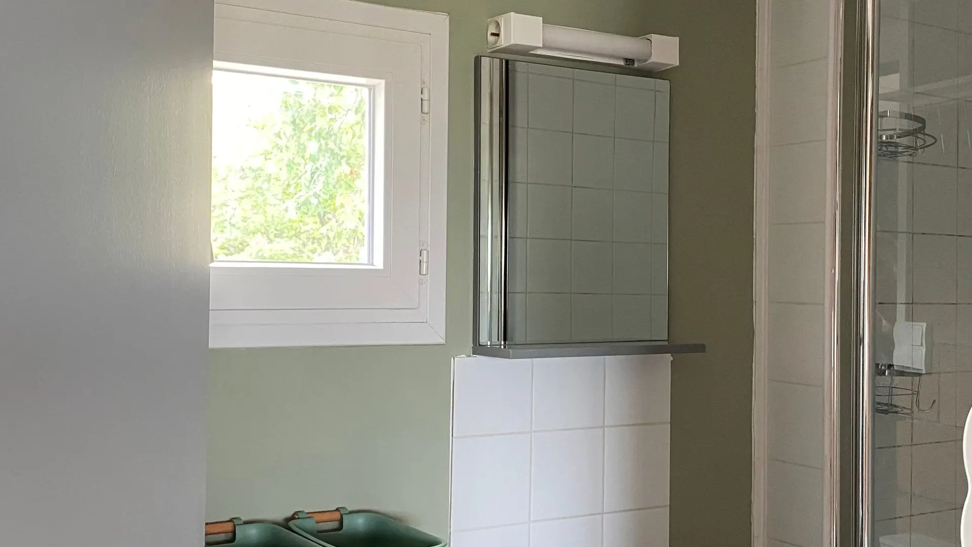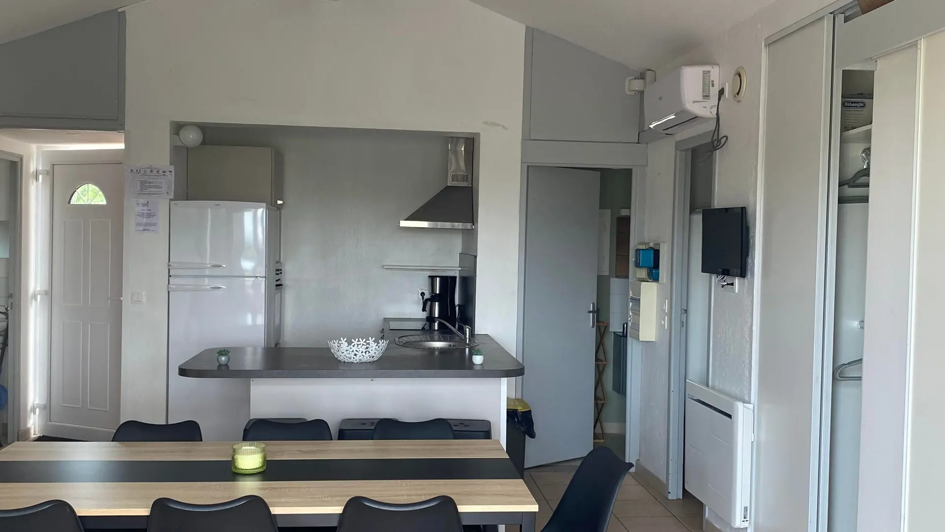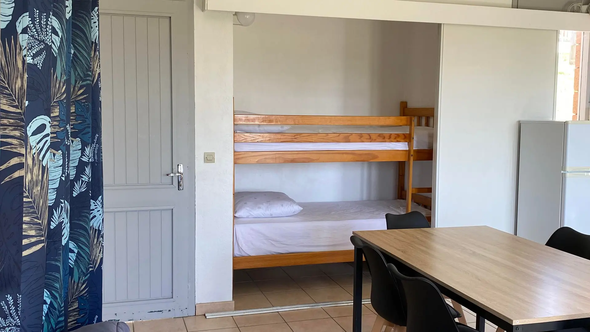 El chalet de 45 m 2 incluye una sala de día (sofá de claves de clic) con cocina americana totalmente equipada, 3 alcoba (2x140) (2x90 superpuesta), 2 salas de agua con 2 baños.