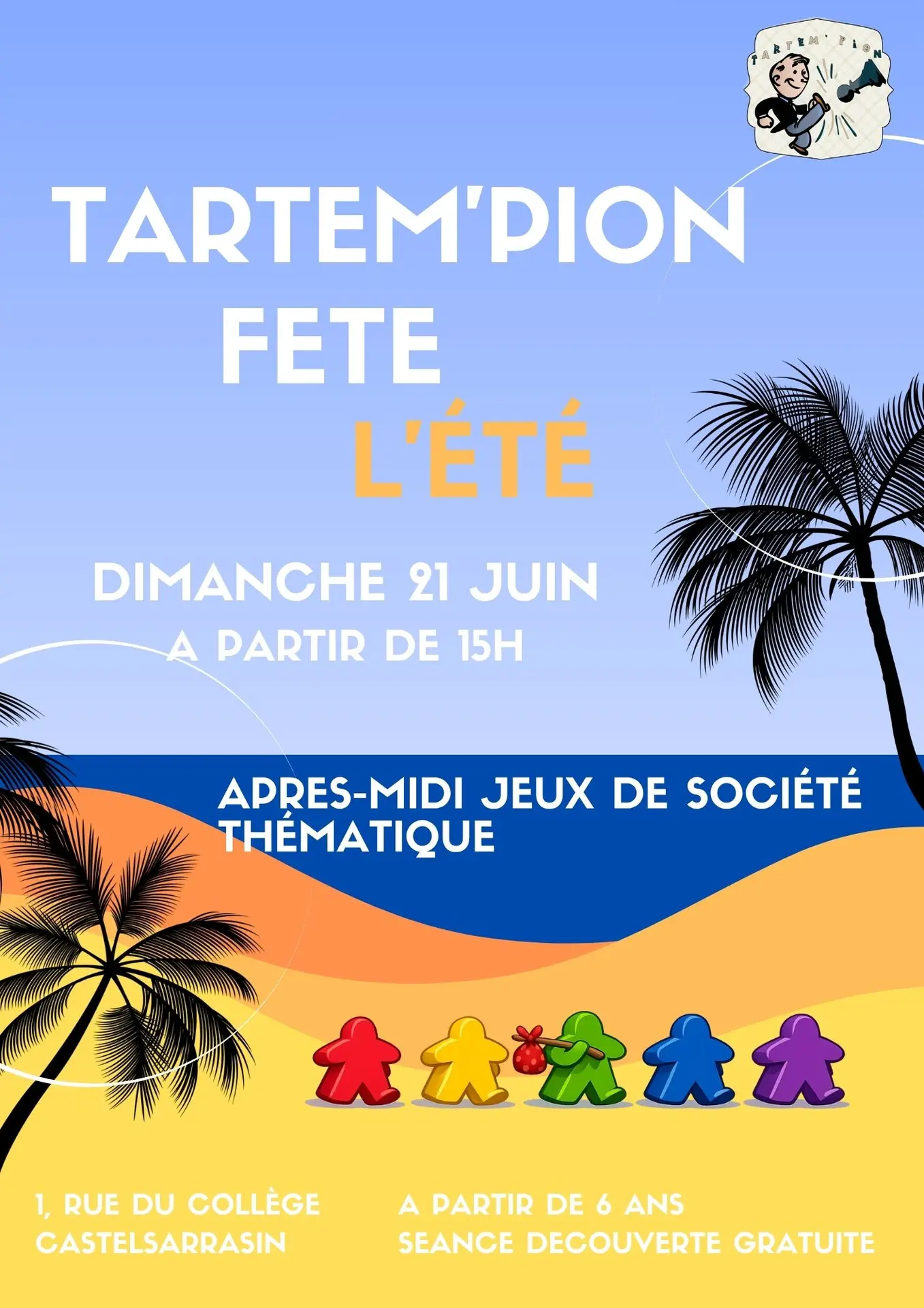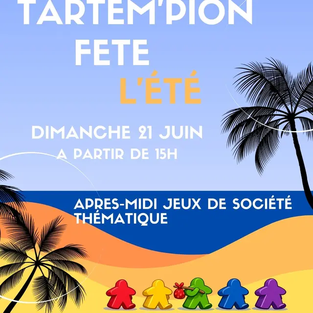 ¡Tartem'Pion celebra el verano! Ven a jugar con nosotros en esta tarde temática. Las estaciones ocuparán un lugar destacado en las mesas de juego. A partir de 6 años.