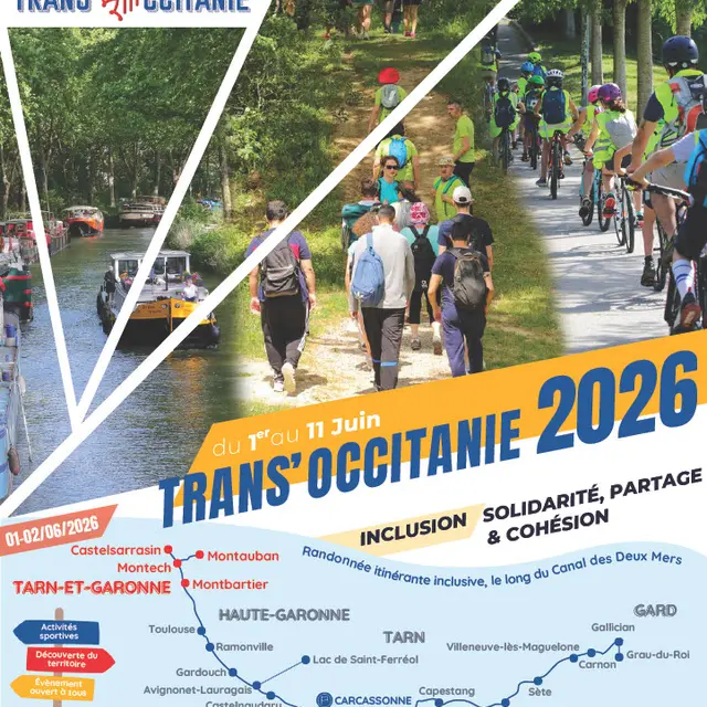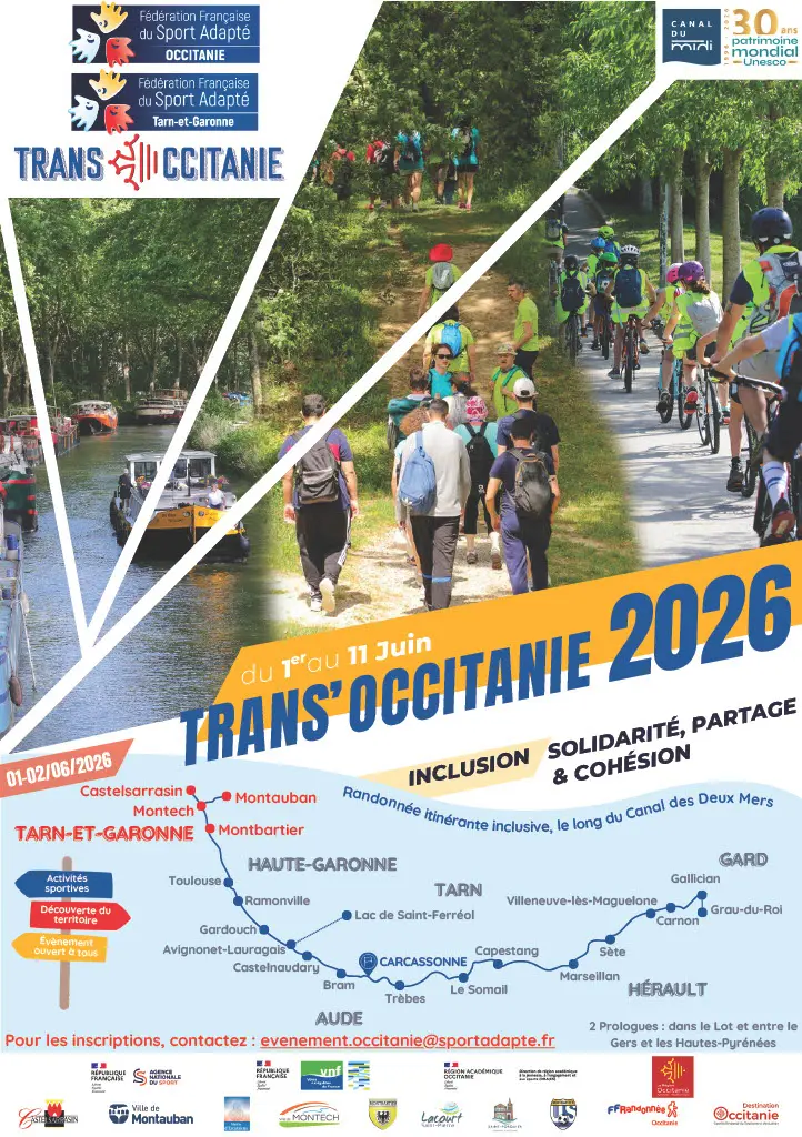 Se trata de una excursión inclusiva de varios días por Occitania, a lo largo del Canal de los Dos Mares. Diseñada para personas con trastornos del neurodesarrollo y/o problemas de salud mental, esta actividad busca unir a todos (organizaciones de atención médica y servicios sociales, escuelas, empresas y público en general) en torno a los valores de inclusión, cohesión y pasión por el deporte.