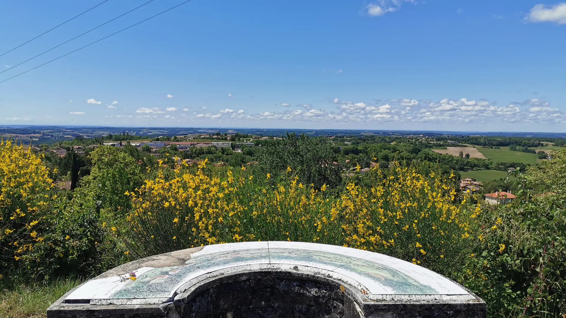 On prend de la hauteur et on apprécie la vue sur Montpezat de Quercy et des communes voisines. Pause coucher de soleil ou pause pique nique, le point de vue se situe juste en dessus du Camping du Faillal.