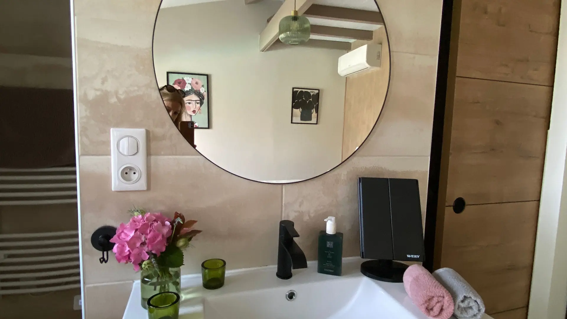 Dans une dépendance parfaitement aménagé la chambre d'hôtes vous attend avec 1 lit 160, une salle d'eau ouverte avec lavabo, douche (robinet thermostatique), wc séparés fermés. Fauteuils, plateau de courtoisie, télévision, wifi, climatisation. Espace extérieur protégé avec table chaises et le nécessaire pour pique-niquer (assiettes couverts verres) Tonnelle avec salon de jardin. Piscine chauffée à partager avec le propriétaire (transats). Jardin fleuri et clôturé.