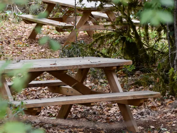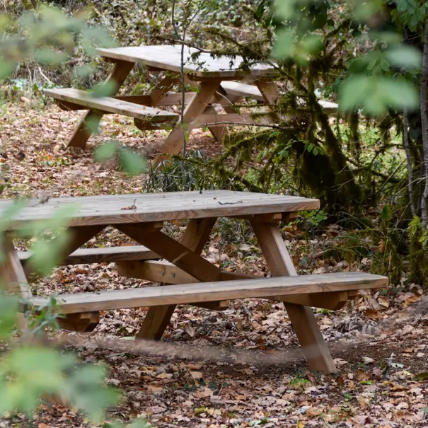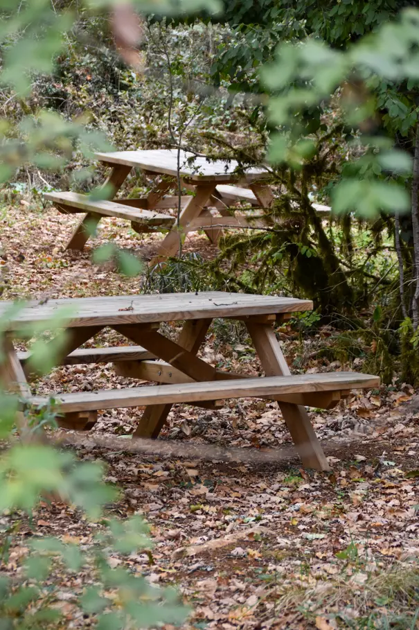 Accessible toute l'année, l'aire de pique-nique de la grotte dispose de plusieurs tables en bois. Elle est divisée en deux espaces. Un espace en forêt à côté de l'aire de jeux pour manger tout en laissant vos enfants profiter de la tyrolienne, et un espace dans notre parc herboré.