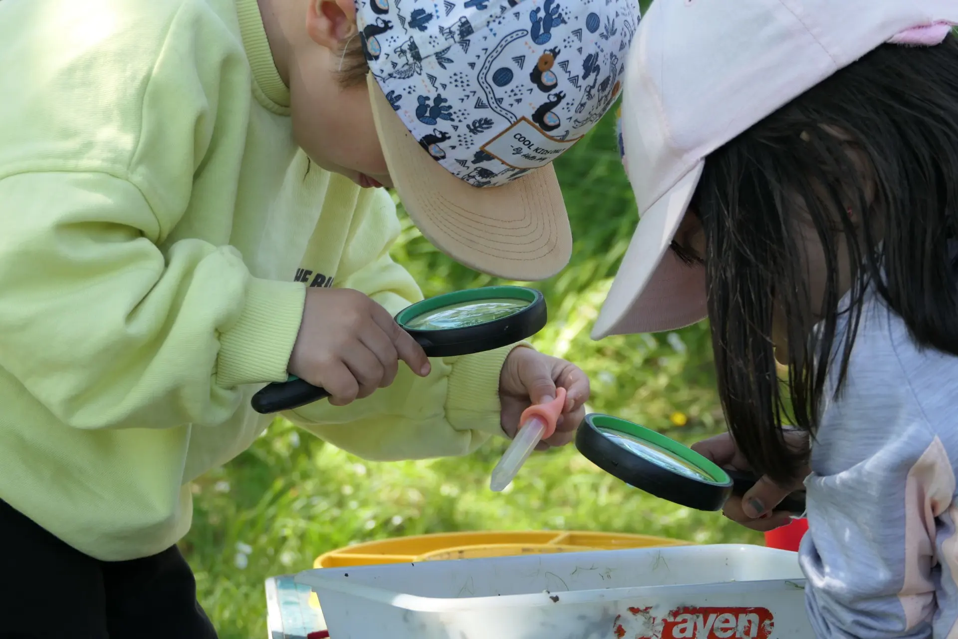 Équipés d’épuisettes, d’un mini laboratoire, de loupe etc… Les enfants explorent les milieux aquatiques à la recherche de macro-invertébrés.