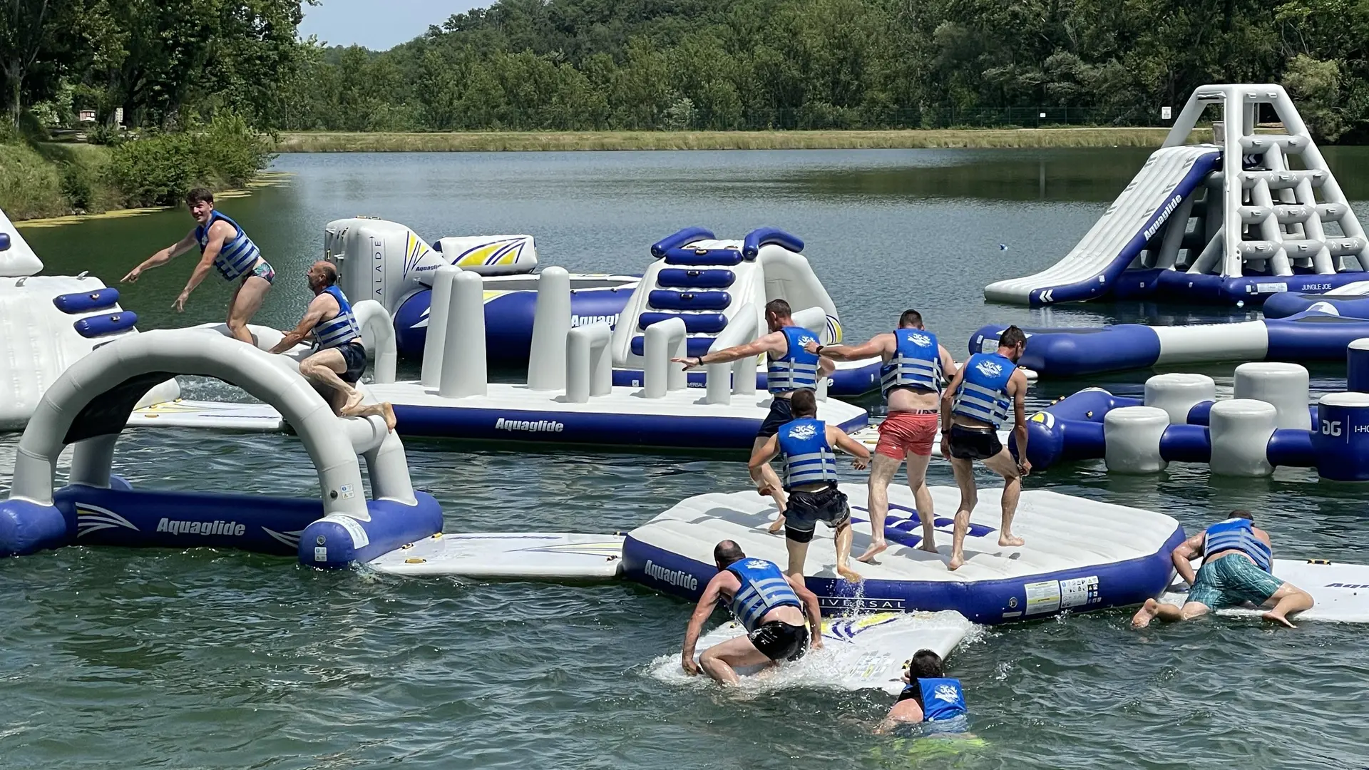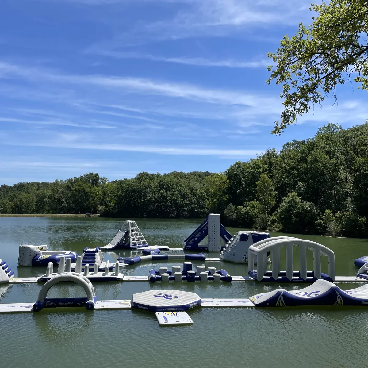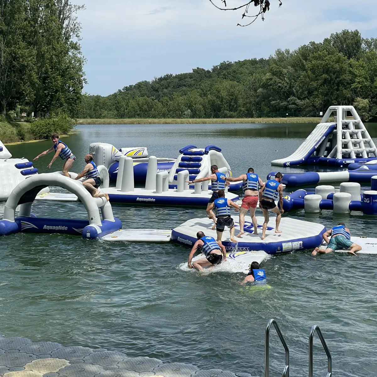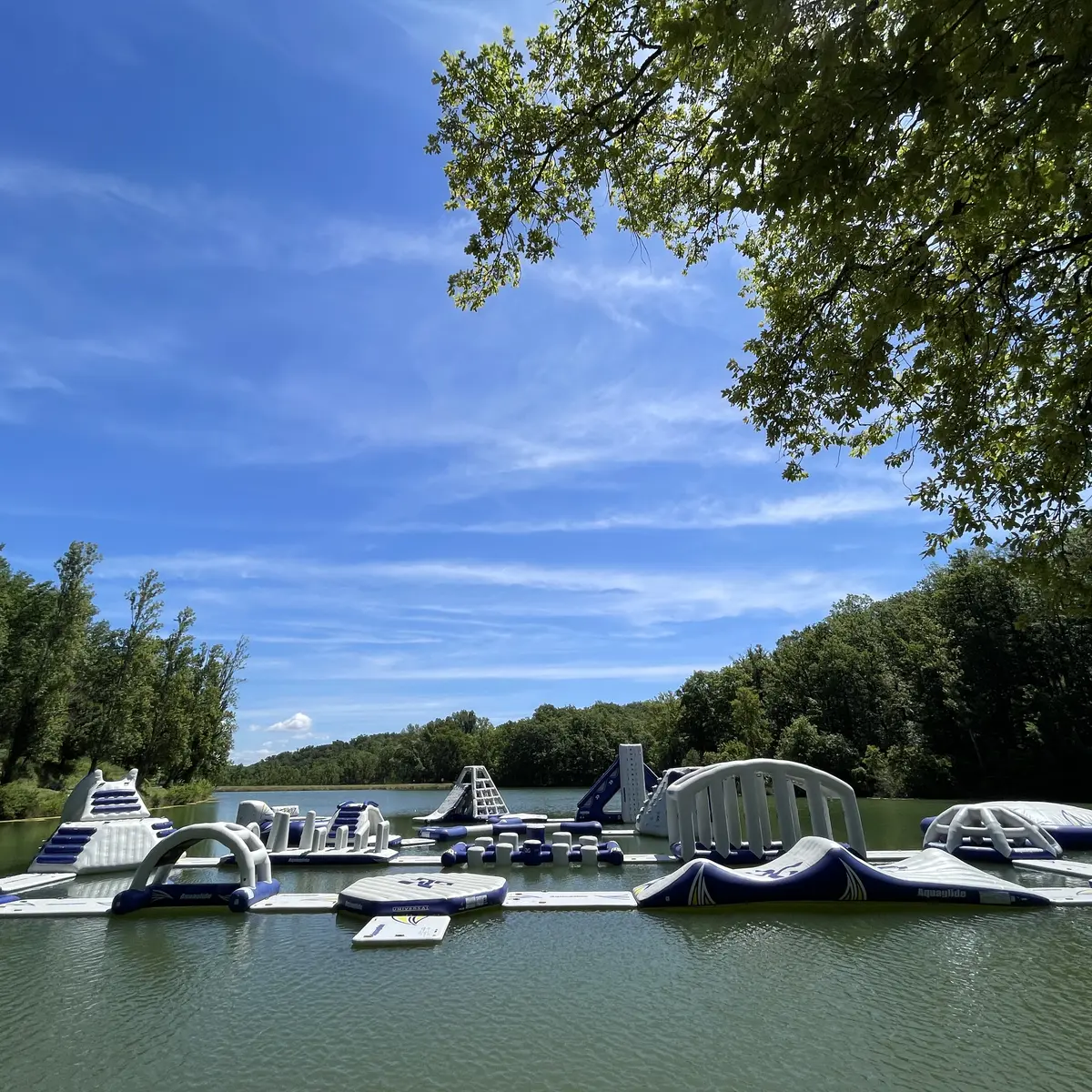 L'Aquapark à Lafrançaise est composé d'un parcours aqua-ludique avec des plongeoirs, des murs d'escalade, tobbogans pour les petits et les grands sur le lac à la Vallée des Loisirs.