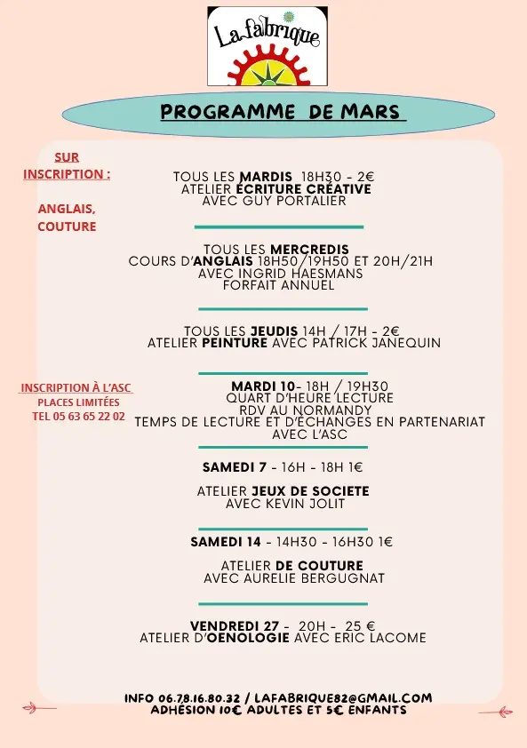 Cet atelier se déroule 1 fois par mois.
