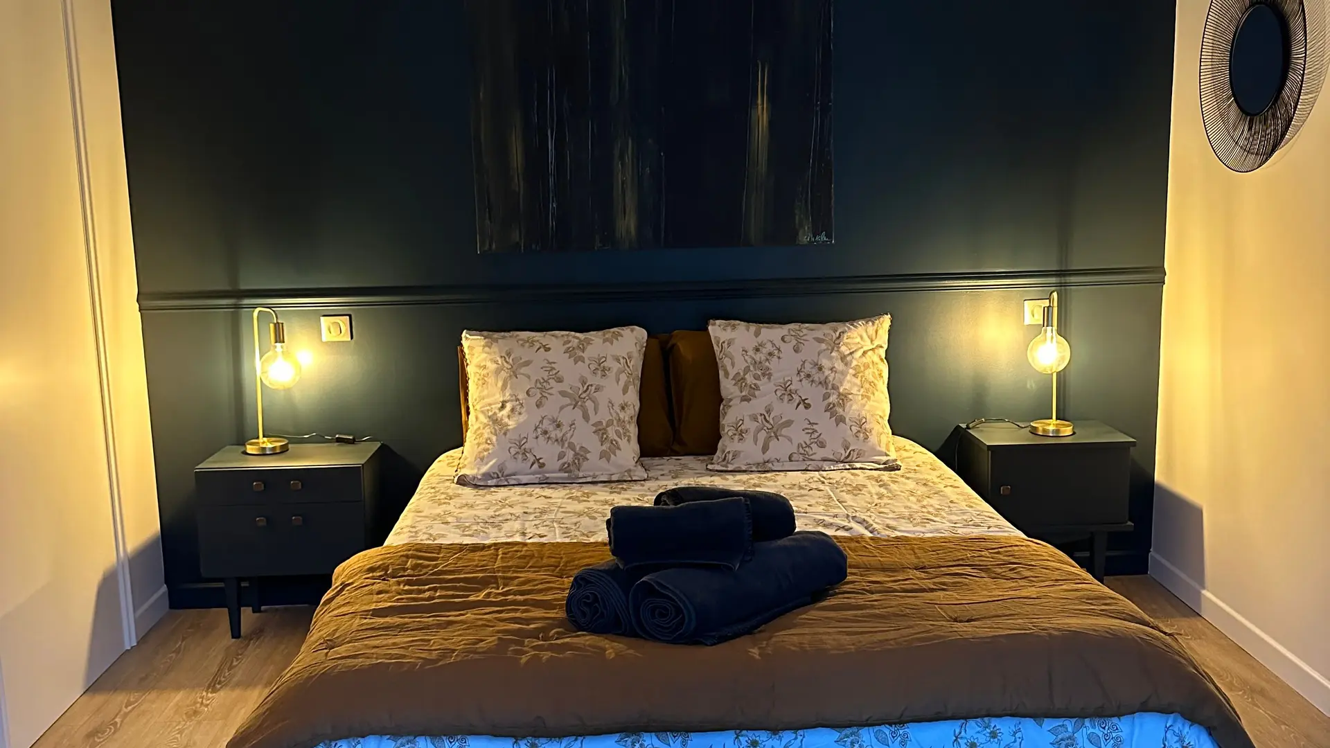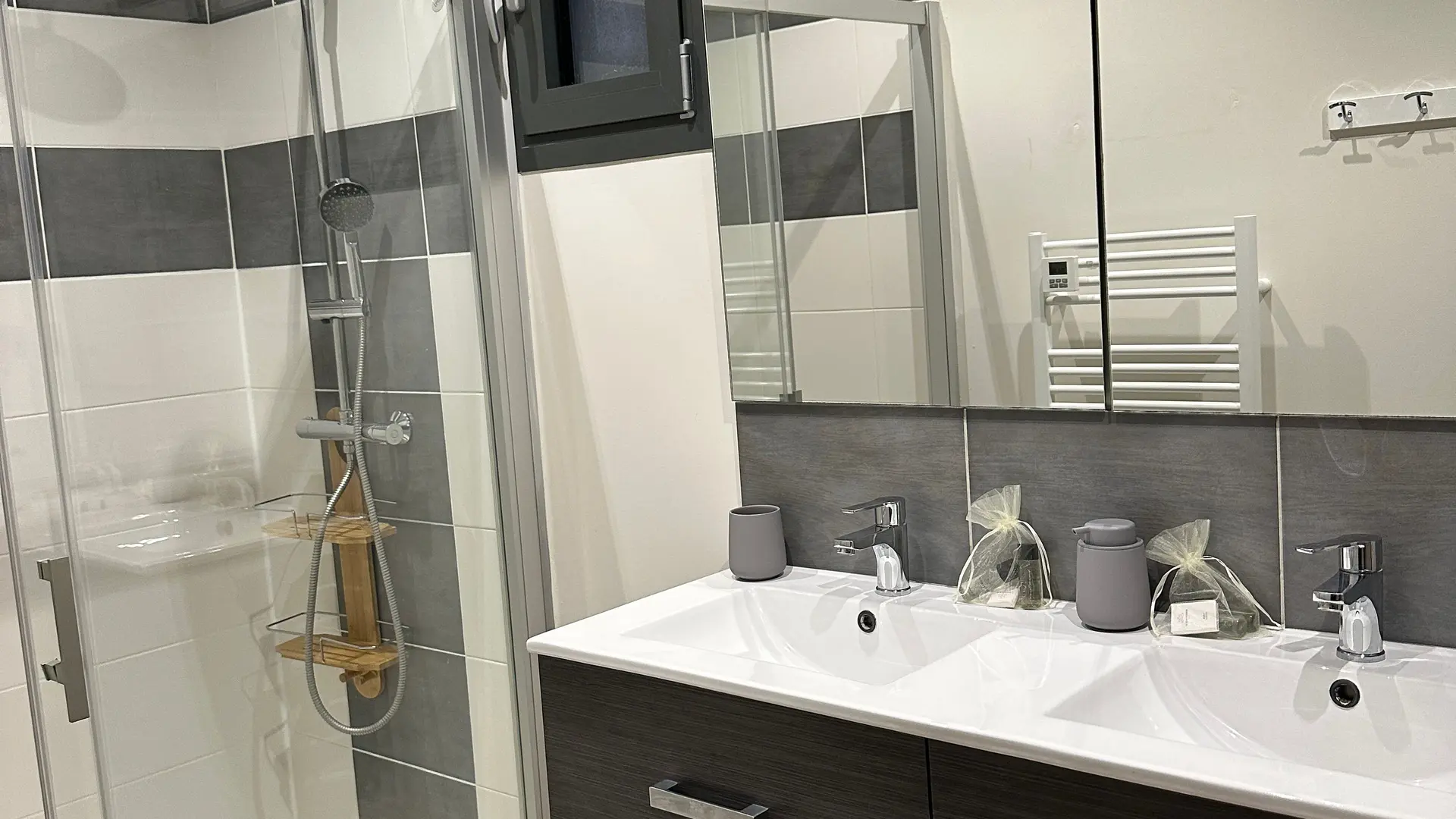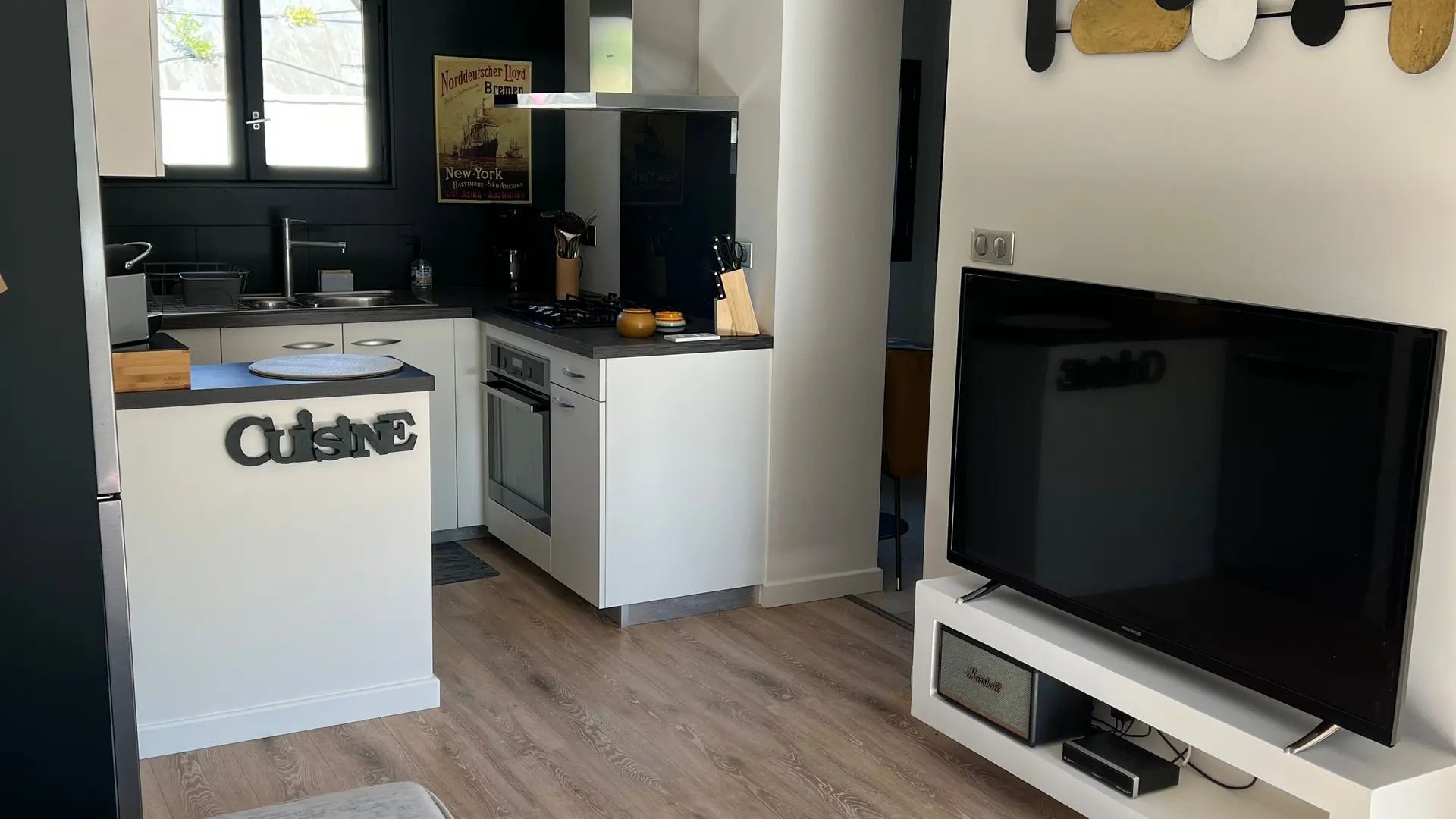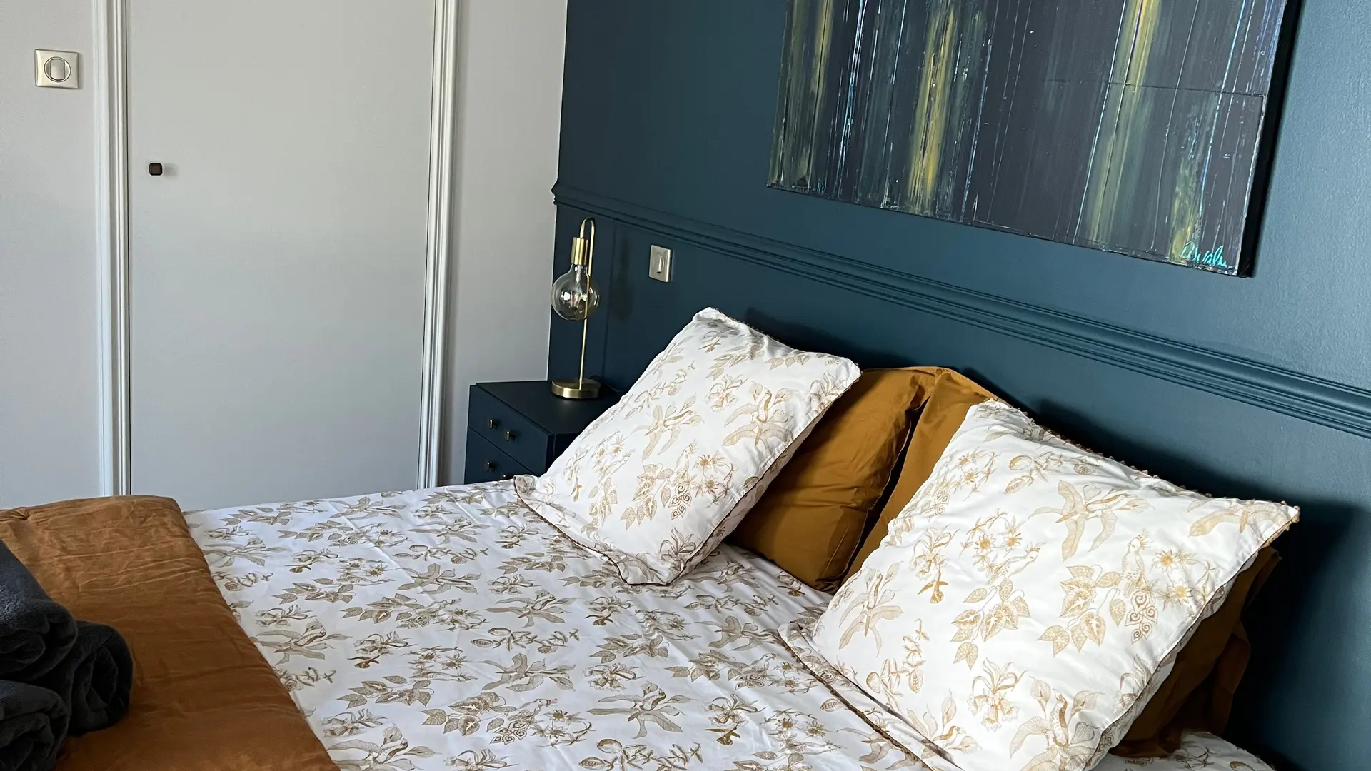 Logement de plain-pied avec entrée indépendante. Il comprend : 1 séjour avec coin-cuisine (éléments intégrés, micro-ondes) et salon (canapé, TV), 1 cellier (lave-linge, réfrigérateur-congélateur), 1 chambre (1 lit 160/190) avec salle d'eau communicante, 1 wc , indépendant. WIFI dans le logement compris dans le prix, linge de lit de toilette et de maison fournis compris dans le prix. Terrasse privée (45m2) où se trouve une piscine privée. Salon de jardin, barbecue. Parking privé. 2 vélos VTC sur place. Chauffage électrique.et climatisation