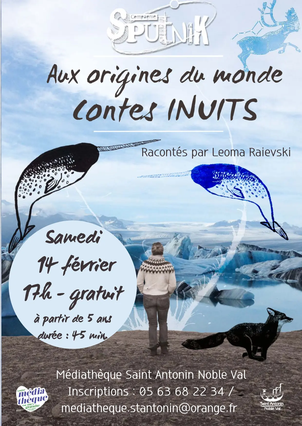 Le spectacle "Aux origines du monde, contes inuits" présente Leoma Raievski, née au Goéland, comédienne, conteuse, vous racontera l'amour qu'elle porte à son pays natal, en partageant sa culture et ses légendes.