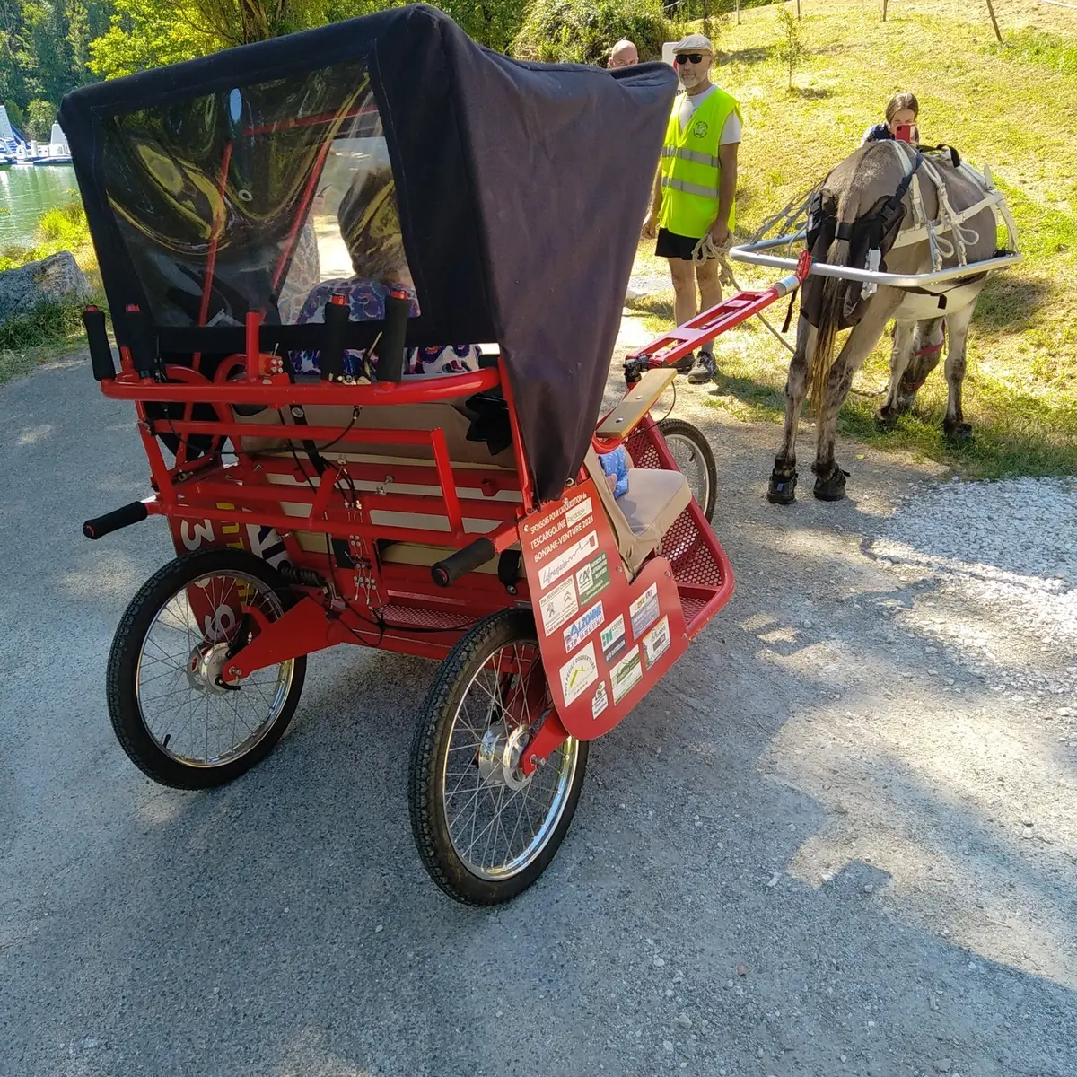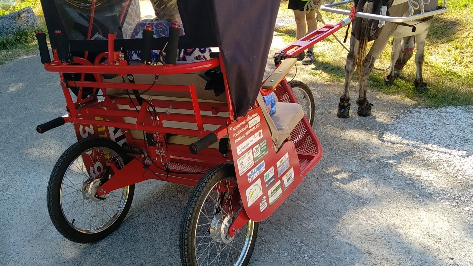 Balade autour du lac en Escargoline, carriole tirée par un âne