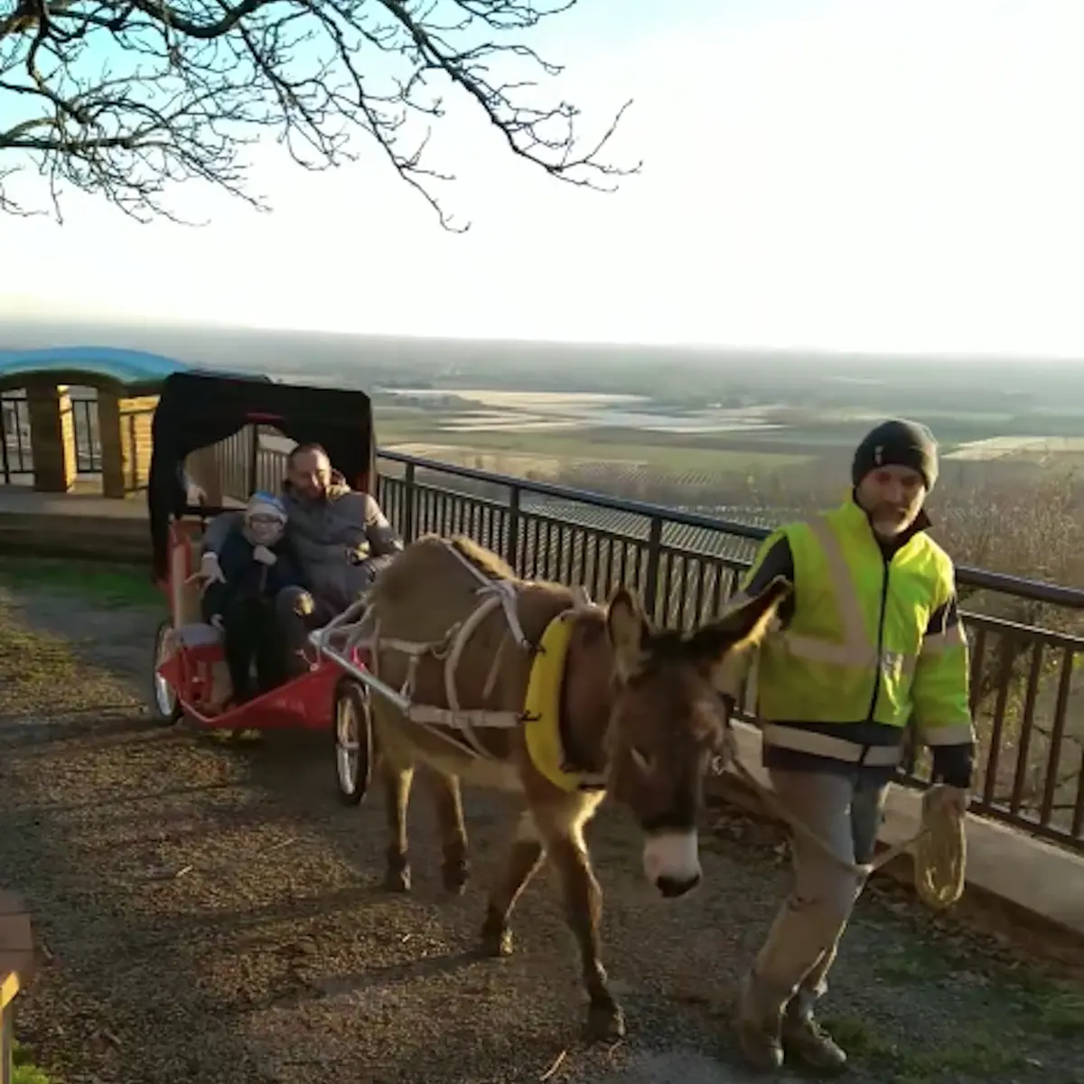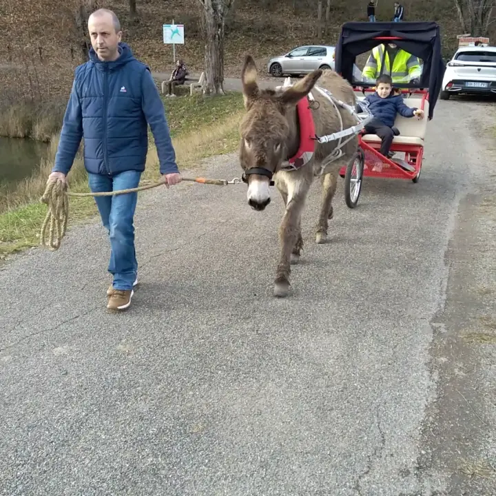 L'association Bon'âne-Venture vous propose des balades autour du lac de lafrançaise avec une Escargoline tirée par un âne.