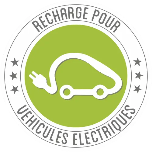 Deux bornes de recharge pour véhicules électriques avec deux places de parking. Service accessible 24h/24.