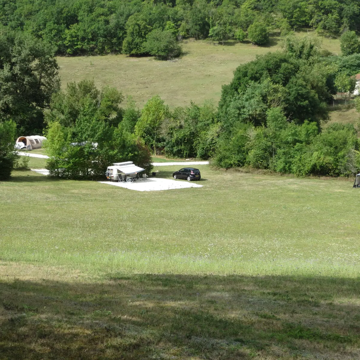 Un petit camping pour que des adultes avec seulement 6 emplacements maximum — pour sérénité, nature et confort — avec vue imprenable, sanitaires modernes, services pratiques et ambiance conviviale à Valeilles,