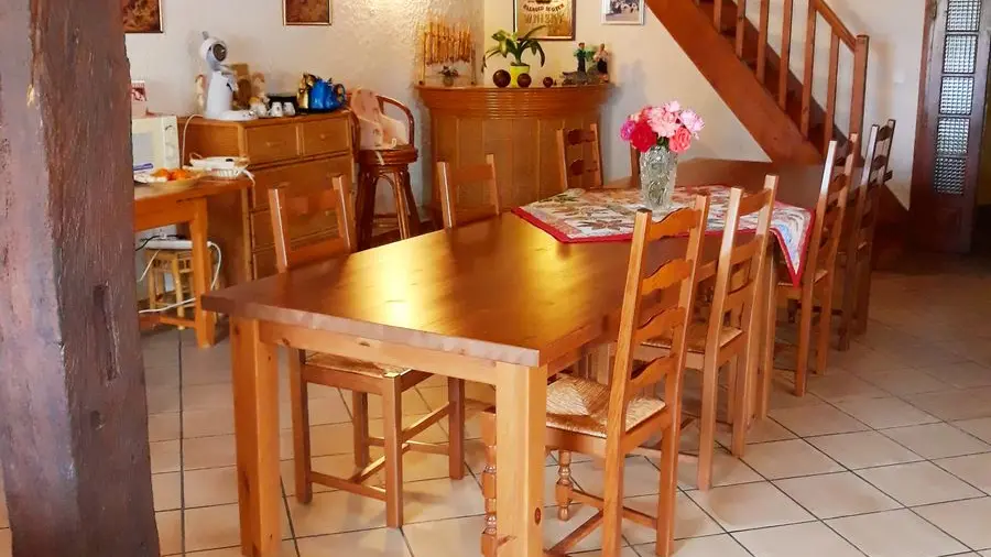 5 ch. à l'étage dans une belle maison (entrée indép.) : 2 ch (1x90 + 1x140) ; 1 ch (1x160), 1 ch (1x90) et 1 ch (2x90 + 1x160). Sdd/wc privatifs. 2 ch sont mansardées. Salle de jeux. Salon TV avec bibliothèque. Cuisine d'été. Lit bébé gratuit.