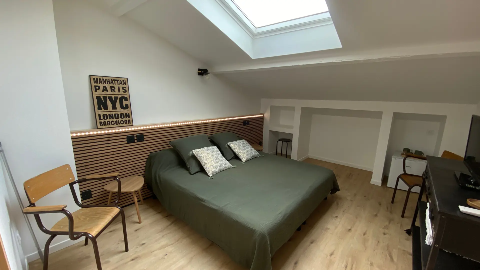Au 3ème étage découvrez la toute nouvelle chambre Viaur dans un esprit vintage industriel avec 2 lits 0,90 rapprochés, meuble avec TV, plateau de courtoisie avec petit réfrigérateur, climatisation. Salle d'eau privative à cette chambre avec sèche cheveux, sèche serviette, douche lavabo et wc.