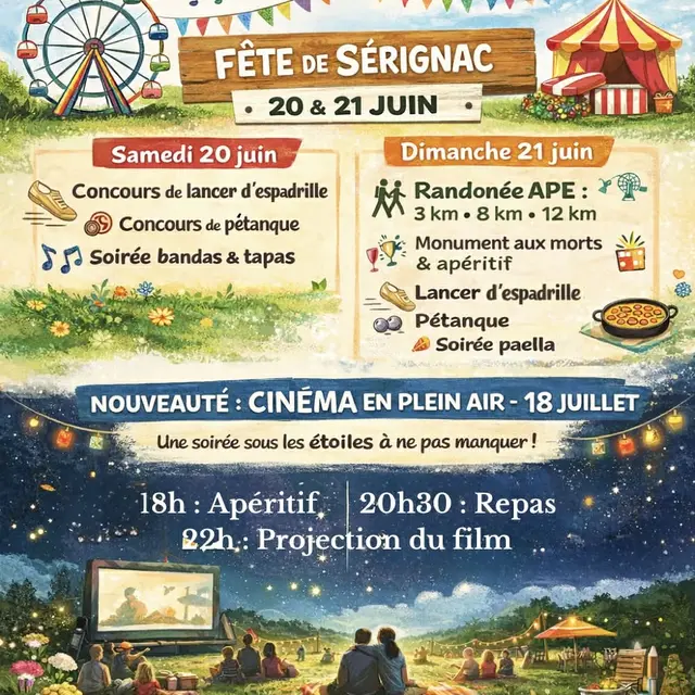Cinéma en plein air - 18h : Apéro - 20h30 : repas - 22h : projection du film