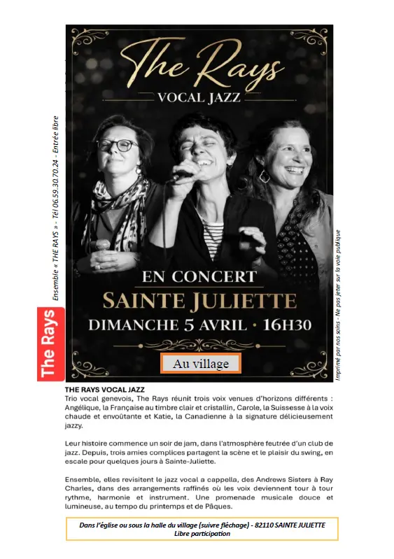 Dimanche 5 avril, à 16h30 - Dans le village de Sainte Juliette