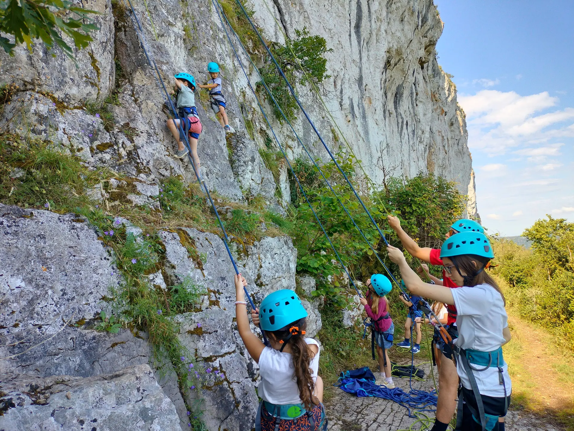 En petit groupe ou sur une séance plus longue, il est possible de s’initier à l’escalade puis de profiter d’une descente en rappel.