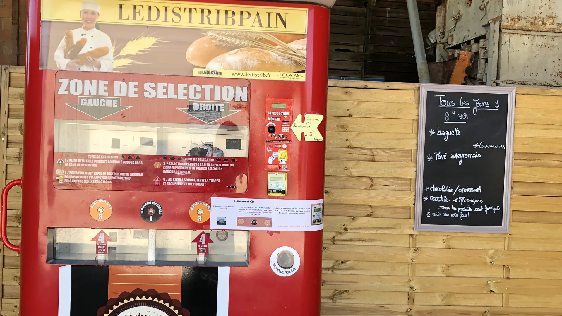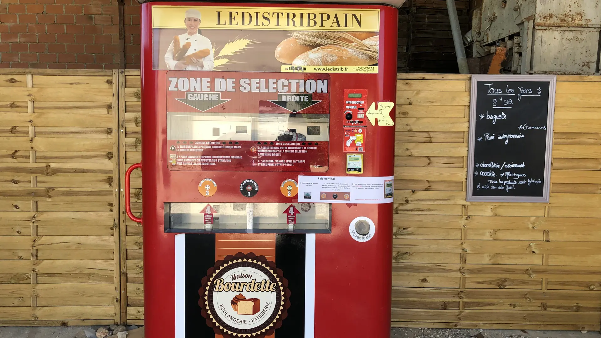Sur le parking de Au Chalet à Puycornet (distributeur de fruits, légumes, viande et fromage) vous retrouverez un distributeur de pain frais alimenté par la Boulangerie Maison Bourdette (de Meuazac).