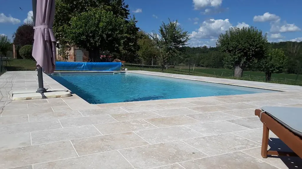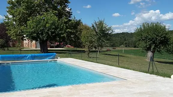 Piscine chauffée 11x6m à partager avec propriétaires et locataires.