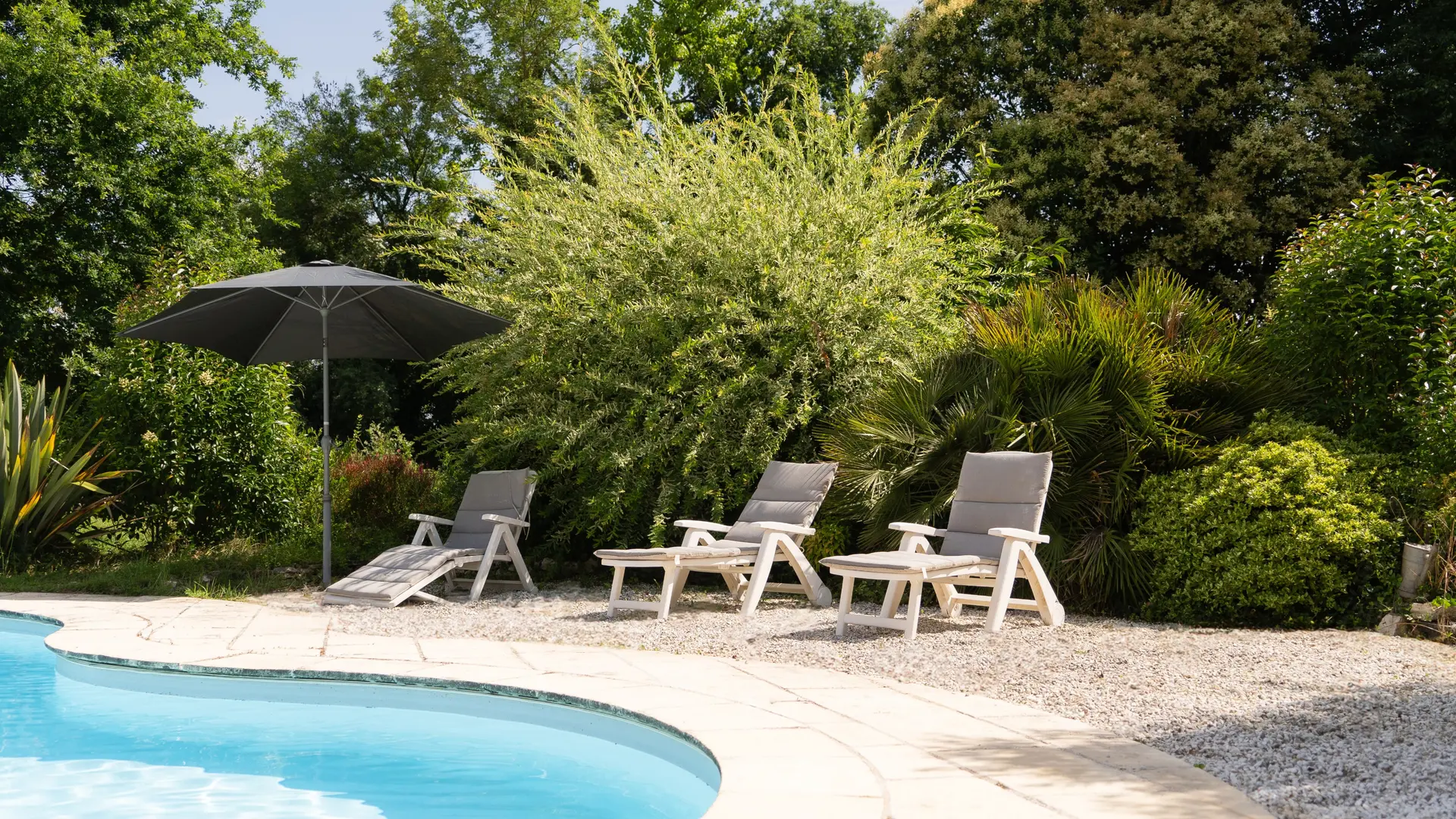 Pour vous détendre, profitez de notre piscine extérieure entourée de chaises longues, idéale après une journée de découverte des environs.