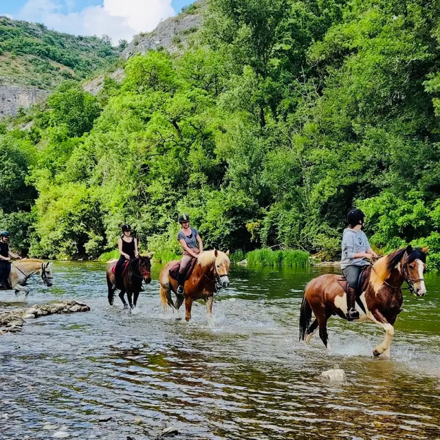Outre notre activité classique de centre équestre et de poney-club, nous organisons tous les week-end au printemps et à l'automne des randonnées demi-journée, journée et 2 jours qui permettent de découvrir l'environnement des Gorges de l'Aveyron.