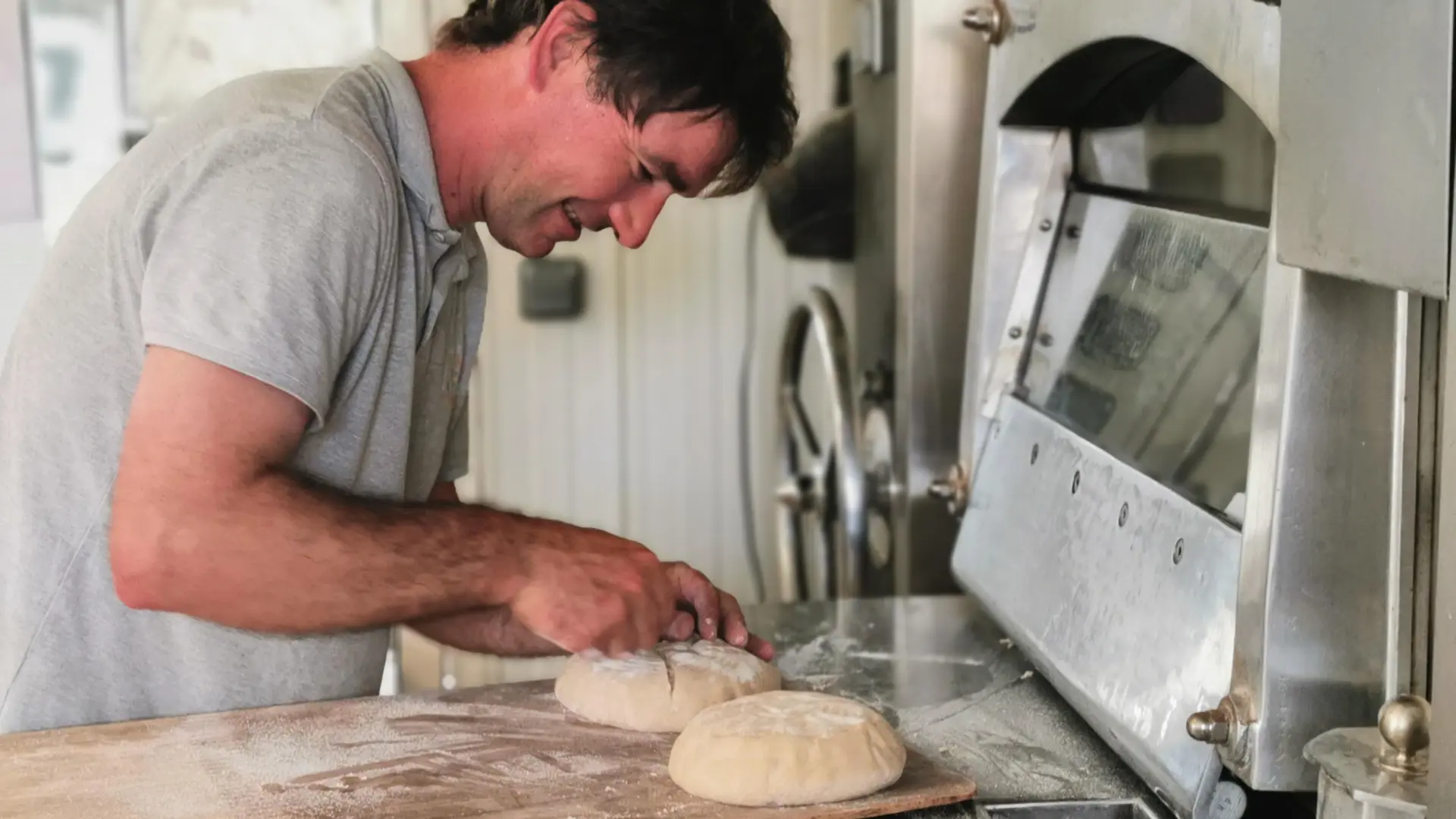 Exploitation familiale bio produisant pains au levain 100 % maison à base de blés anciens et petit épeautre, cuits au four à bois. Farines, légumineuses et ventes directes sur marchés et au fournil.