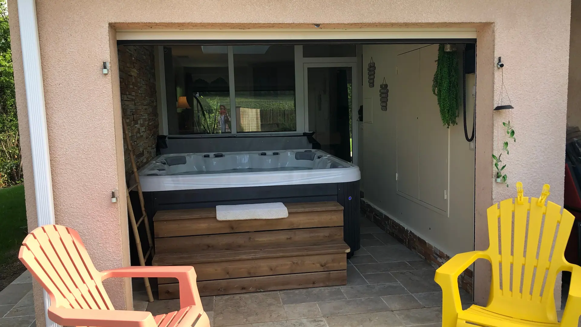 Véritable SPA 6 places avec point de vue unique sur les vignes et ouvert sur la terrasse Sud.