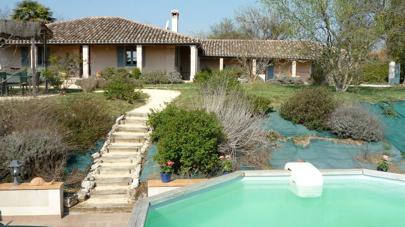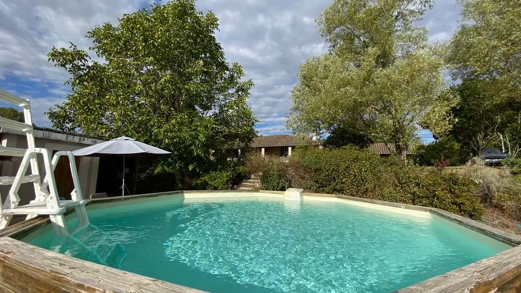 piscine hors sol : 5,30 x 1,25 avec échelle escamotable. Gîte entièrement climatisé.