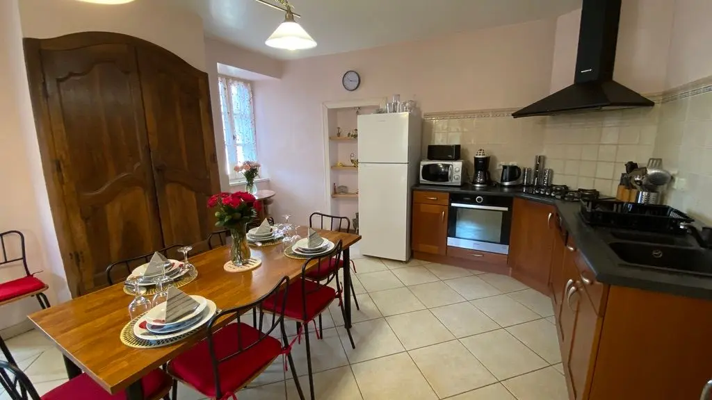 Le logement comprend : hall d'entrée, cuisine (MO, LV, LL), salon (cheminée, lecteur DVD, 2 canapés), 1 ch (1 lit 140), 1 ch (1 lit 160), 1 ch (2 lits 90), 1 salle de bain, 1 salle d'eau/wc, 1 WC. Cellier. Terrasse sous pergola. Ping-pong. En option : ménage, bois. Le prix comprend : connexion internet (Wifi), draps, linge de maison et de toilette. Relevé compteur arrivée/départ.