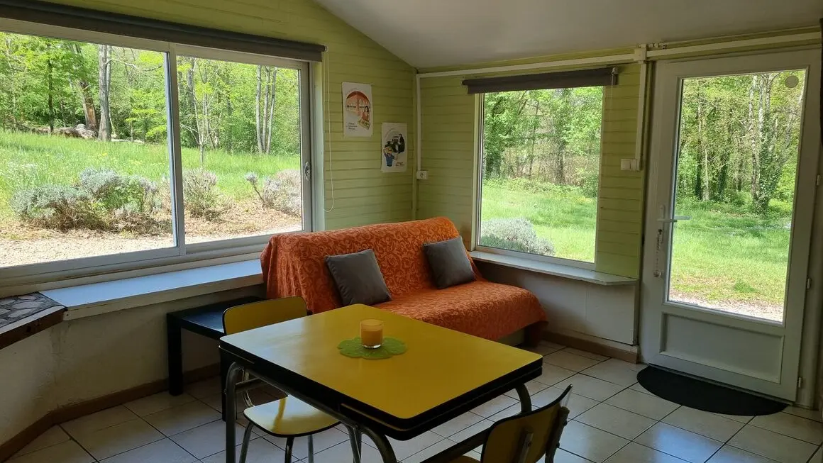 Logement type studio de 35 m2, orienté vers la forêt, il est adossé à la maison d’habitation principale.