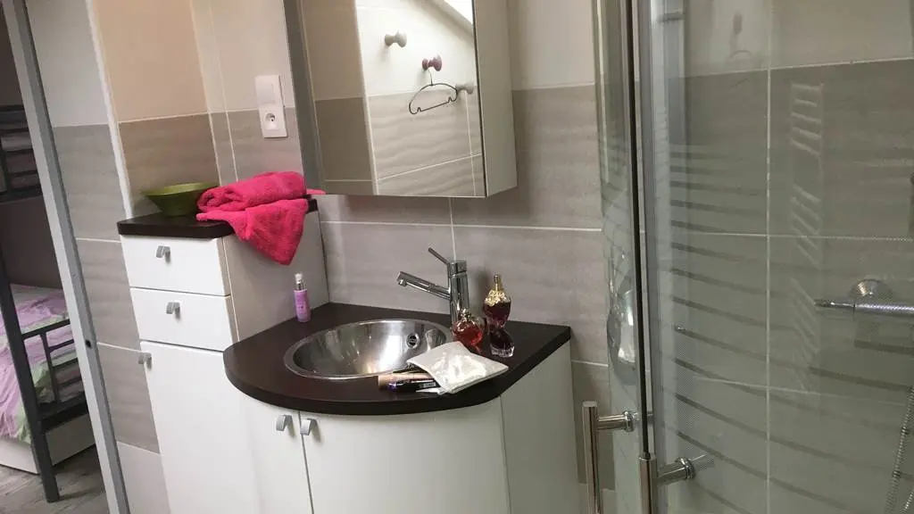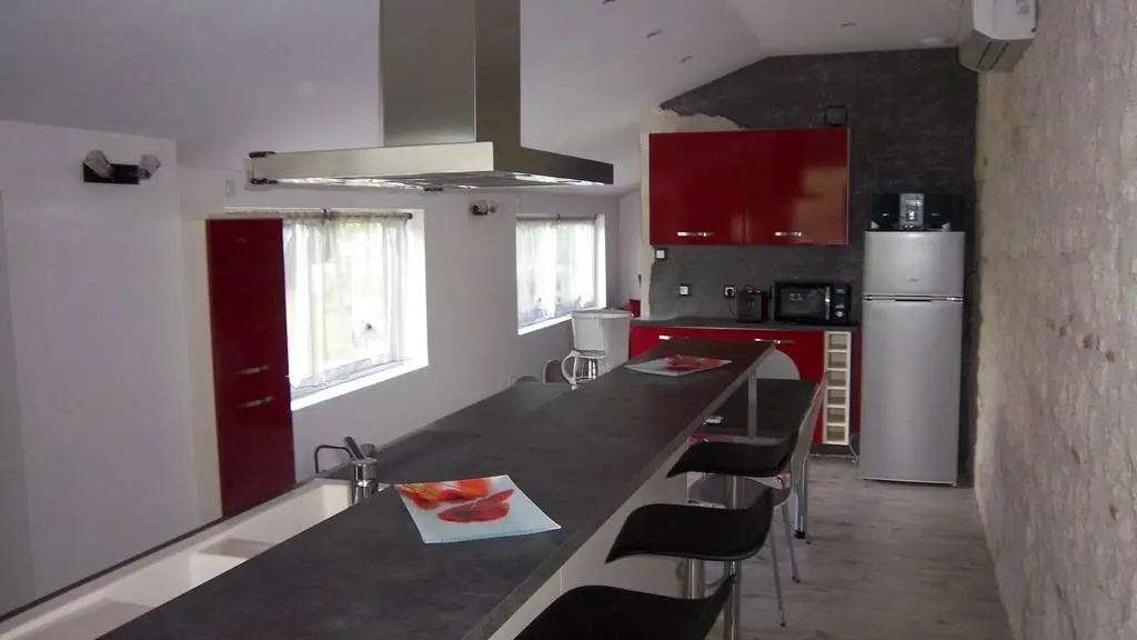 Le gîte est mitoyen à l'habitation des propriétaires mais sans vis-à-vis. Il comprend au rez-de-chaussée : une cuisine entièrement équipée (four, plaques de cuisson, hotte aspirante, lave-vaisselle, réfrigérateur/congélateur, grille-pain, cafetière traditionnelle et Senseo), un salon, une chambre (1 lit 160) avec salle de bain et WC. A l'étage un chambre (1 lit 140, 1 2 lits 90 superposés) avec salle d'eau et WC. Les lits seront faits à l'arrivée pour votre confort.