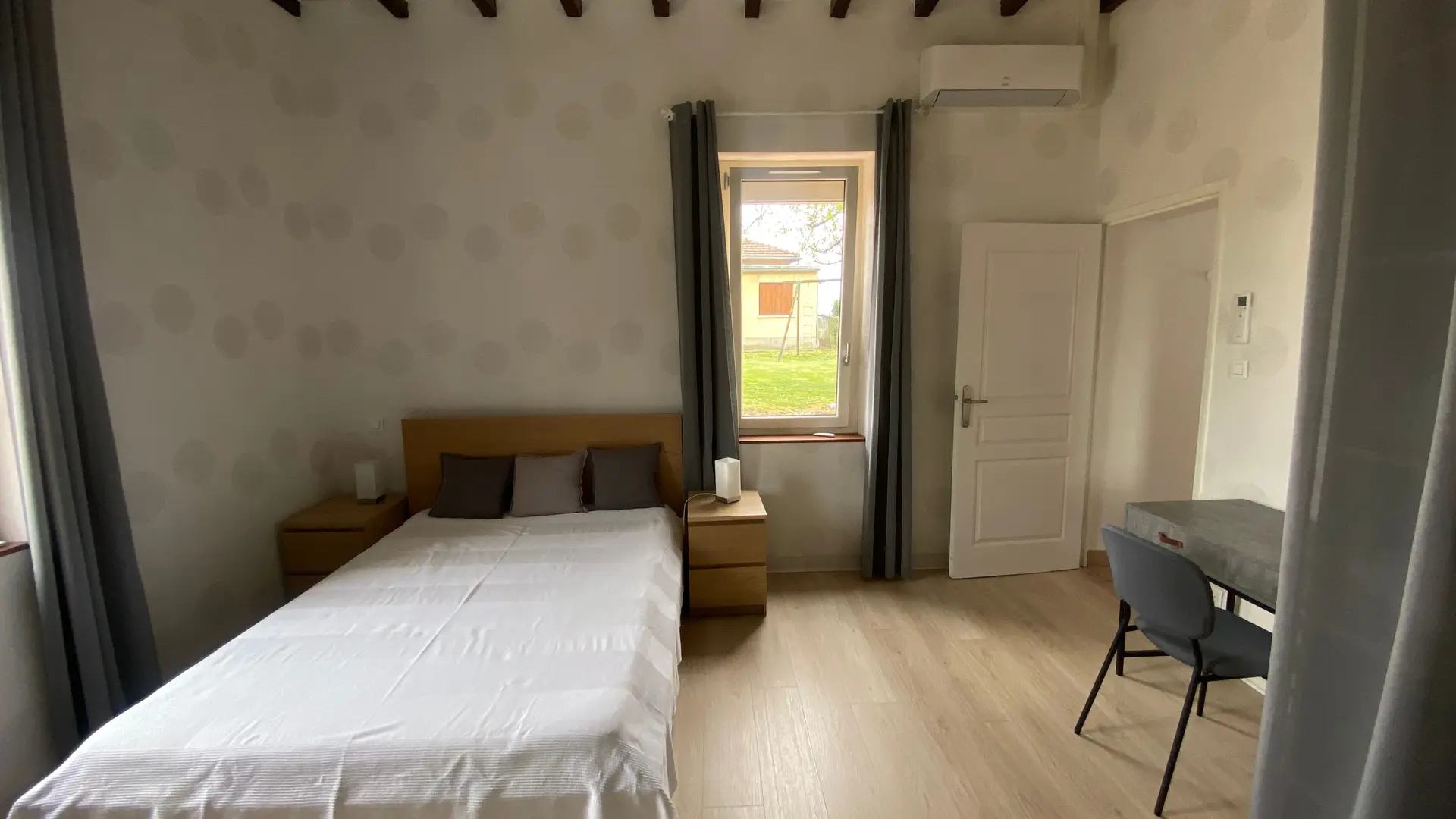 Imprégnez-vous des douces couleurs pastel de ce logement situé au cœur d'une ferme viticole. Vous pourrez vous relaxer dans un grand espace vert réservé exclusivement pour vous et accéder à la piscine du propriétaire pour des moments de détente absolue.